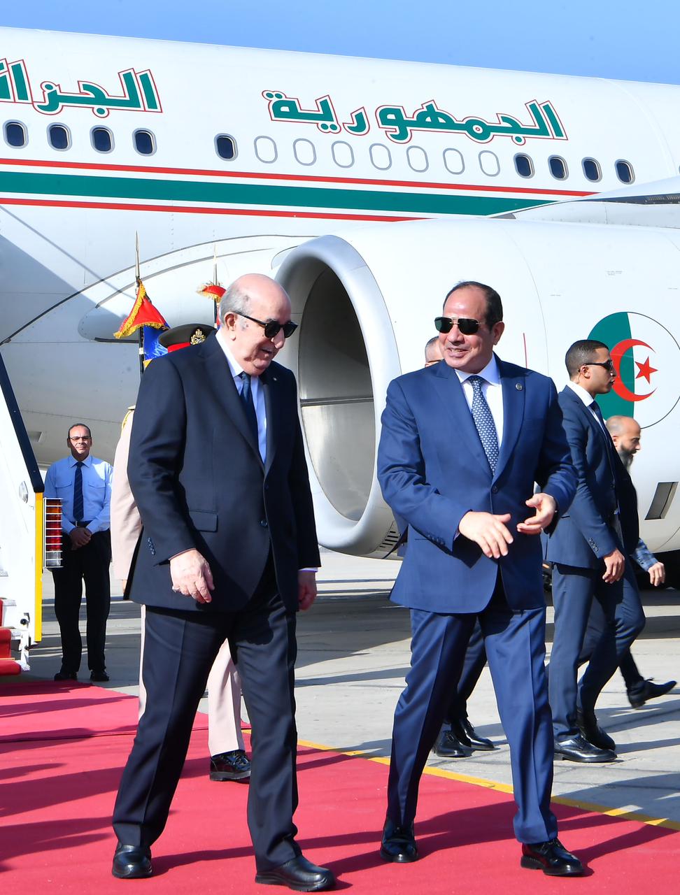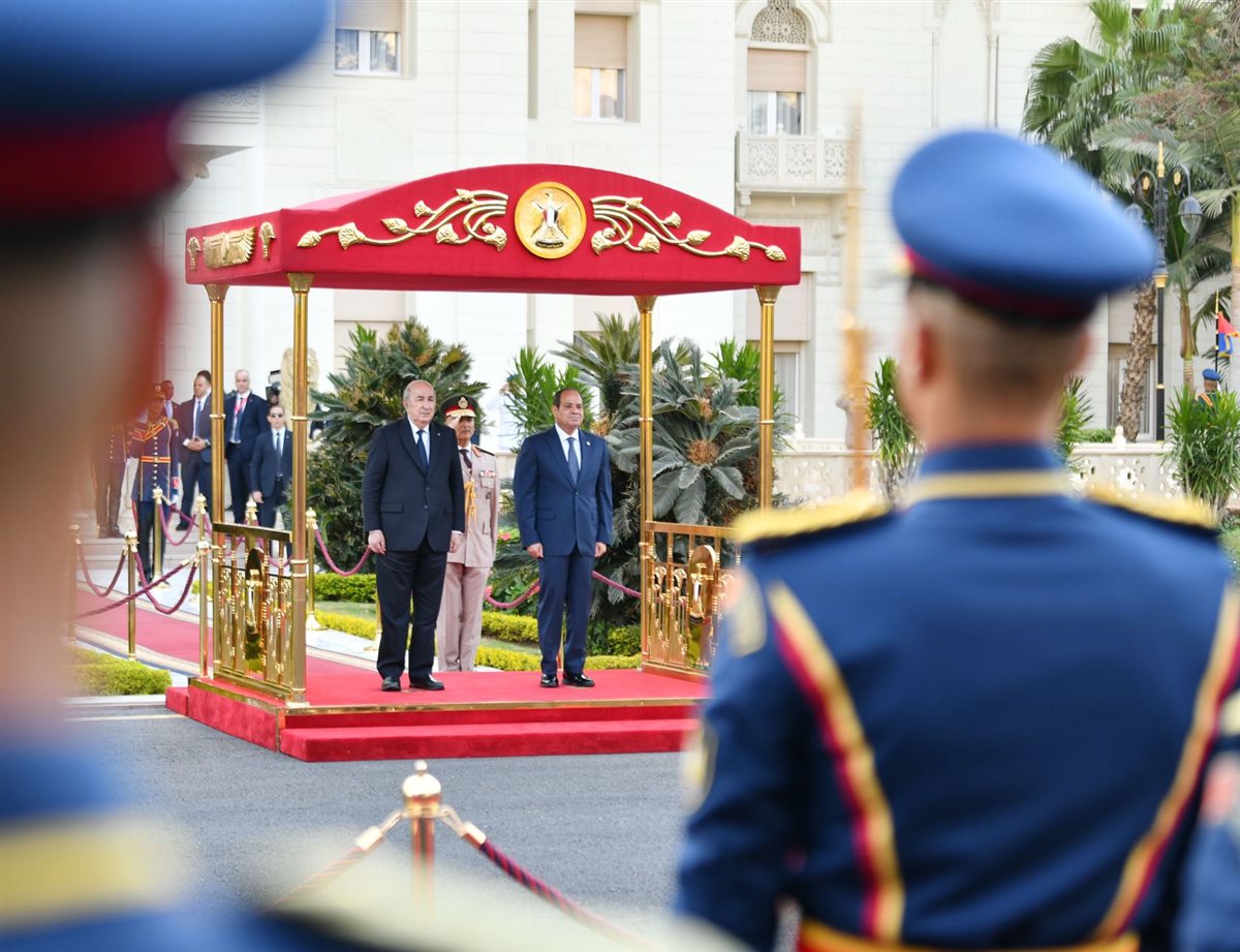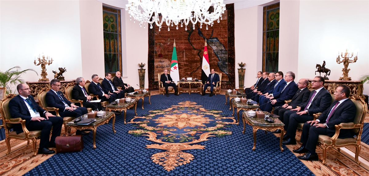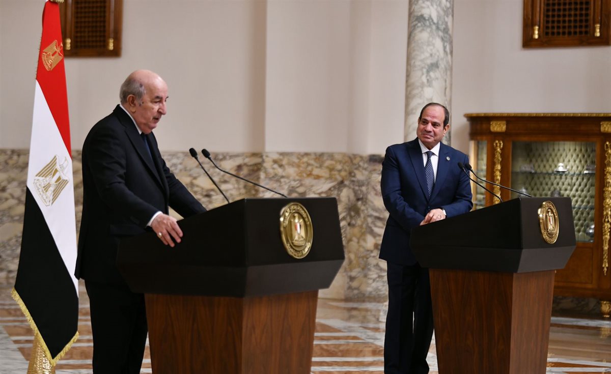 رحب الرئيس عبد الفتاح السيسي بنظيره الجزائري عبد المجيد تبون خلال مؤتمر صحفي مشترك بقصر الاتحادية.