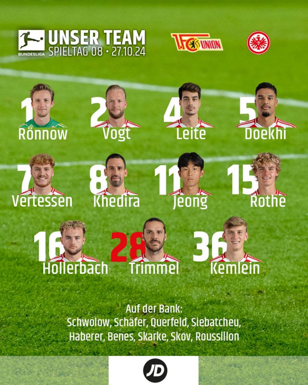 تشكيل يونيون برلين أمام آينتراخت فرانكفورت