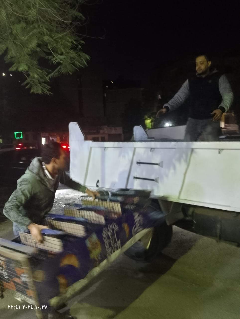 شن حي المنيرة الغربية بمحافظة الجيزة حملة ليلية مكثفة لإزالة الإشغالات بشارع المطار وحتى محطة قطارات صعيد مصر.