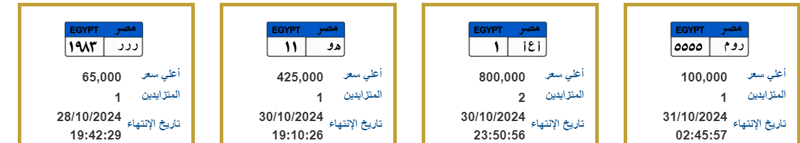 لوحات معدنية مميزة جديدة تدخل المنافسة والمزايدة تصل لمليون جنيه