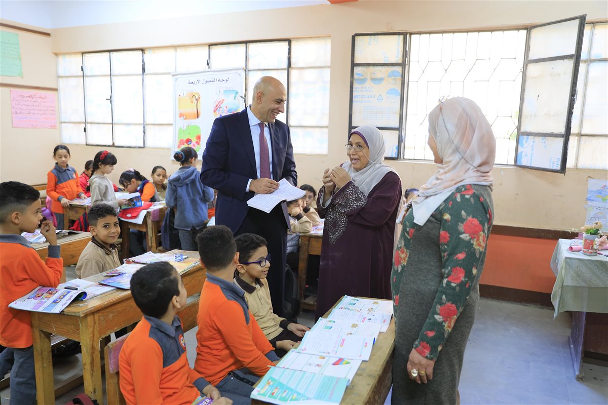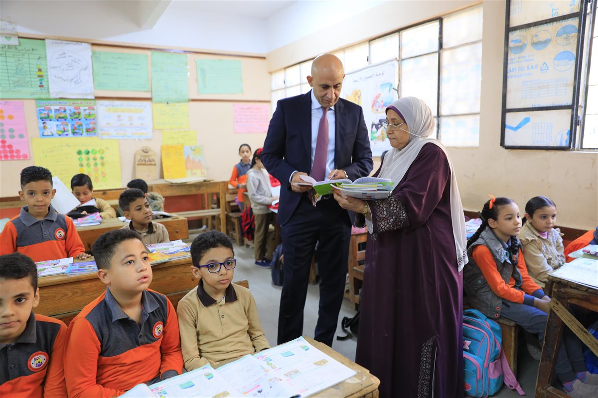 وحرص الوزير على التأكد من الالتزام بالكثافات الطلابية وآليات تطبيق الاختبارات الشهرية، ومتابعة مستوى الطلاب في القراءة والكتابة، كما تابع مع عدد من الطلاب كراسات الحصة والواجبات المدرسية ومستواهم في القراءة.