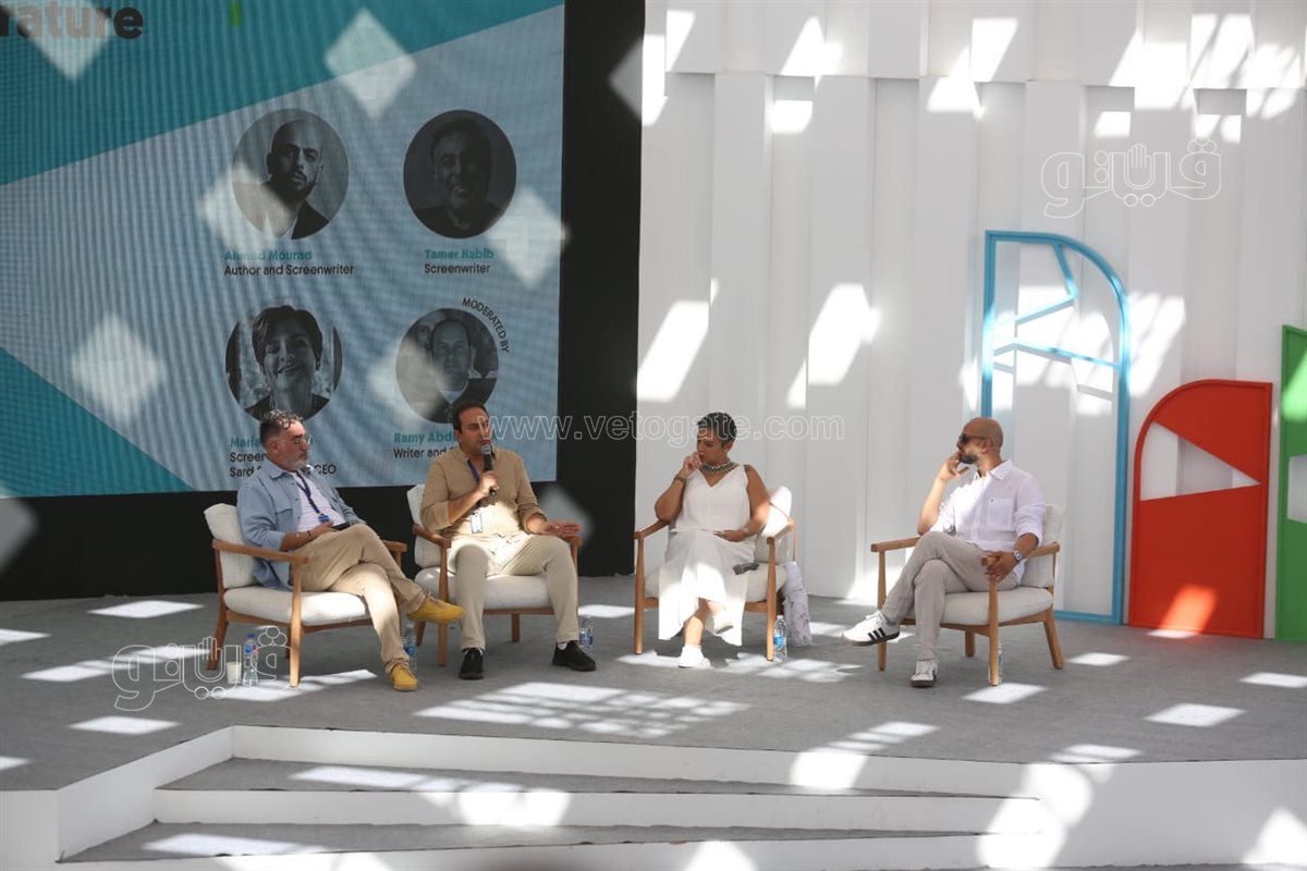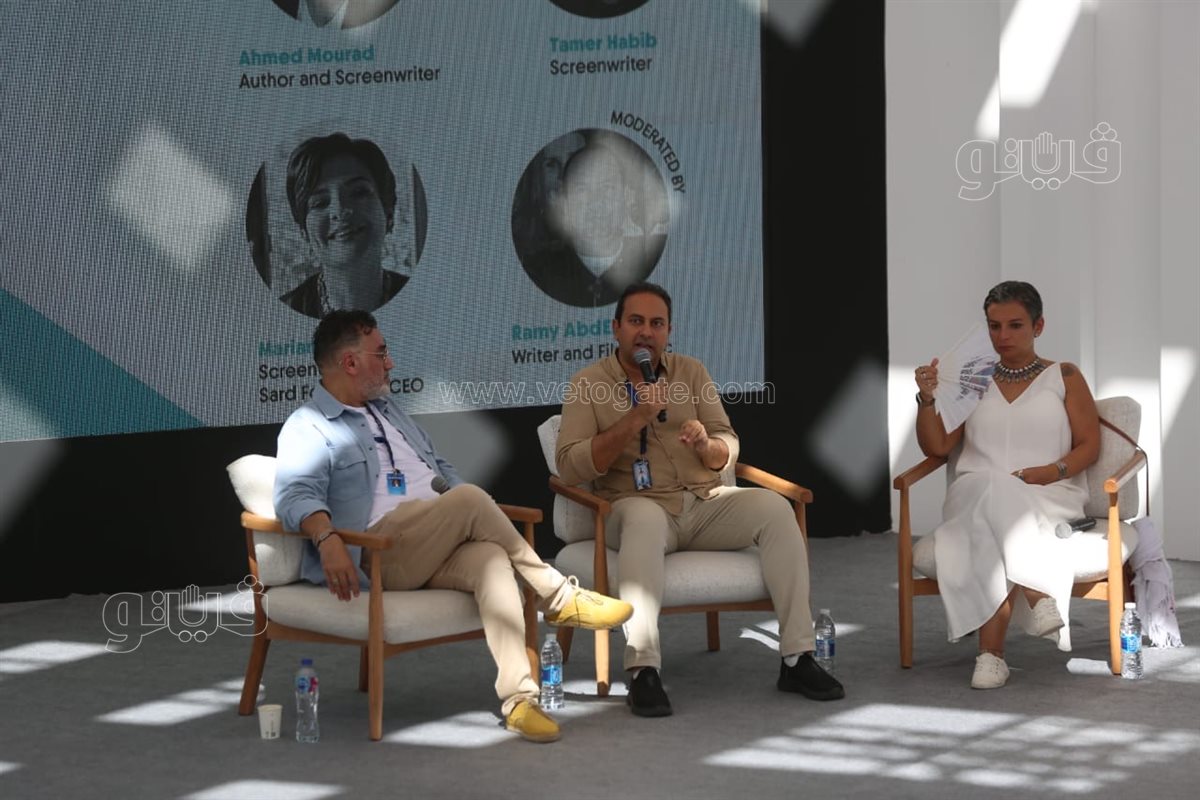 وضمت الجلسة الكاتبة مريم نعوم، والسيناريست تامر حبيب، والمؤلف أحمد مراد، وأدار الجلسة الكاتب والناقد السينمائي رامي عبد الرازق.