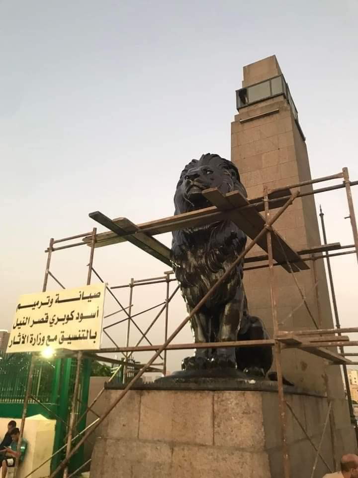 وأكد البيان أن صيانة تماثيل أسود قصر النيل لا تتم بالطرق التقليدية، وإنما تتم بطرق أكثر دقة لإزالة الأتربة الملتصقة فقط دون استعمال ورنيشات ومواد ملمعة، أفسدت العمل على المستوى البصرى والتقني، لذا وجب التنبيه والإشارة للإنقاذ.