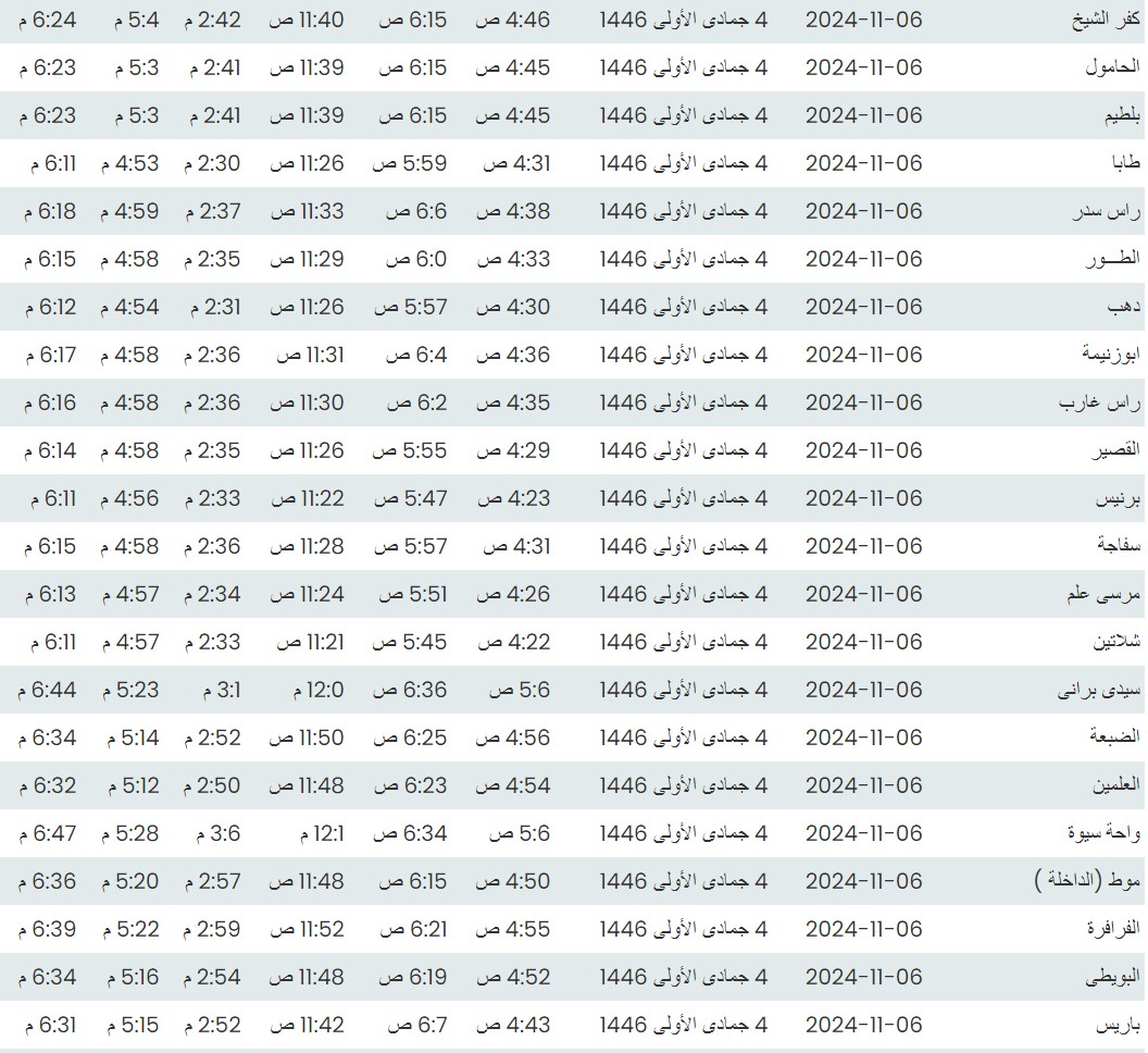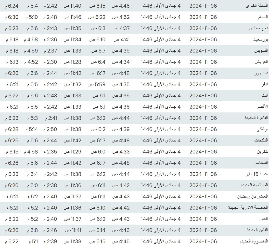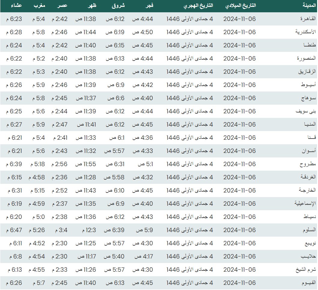 وفيما يلي مواقيت الصلاة، لعدد من مدن ومحافظات الجمهورية من واقع بيانات الهيئة العامة للمساحة