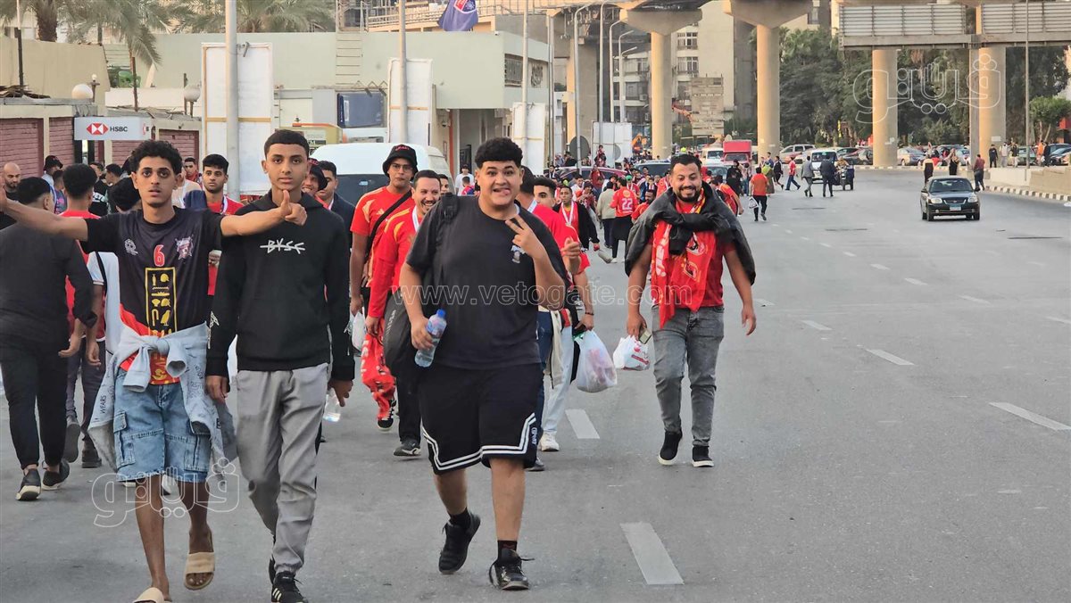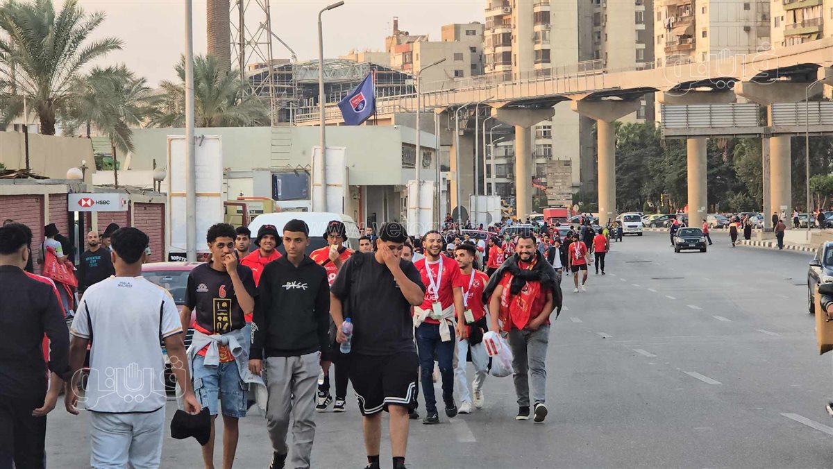 جماهير الأهلي تحتشد في إستاد القاهرة قبل مباراة العين الإماراتي (فيديو وصور)