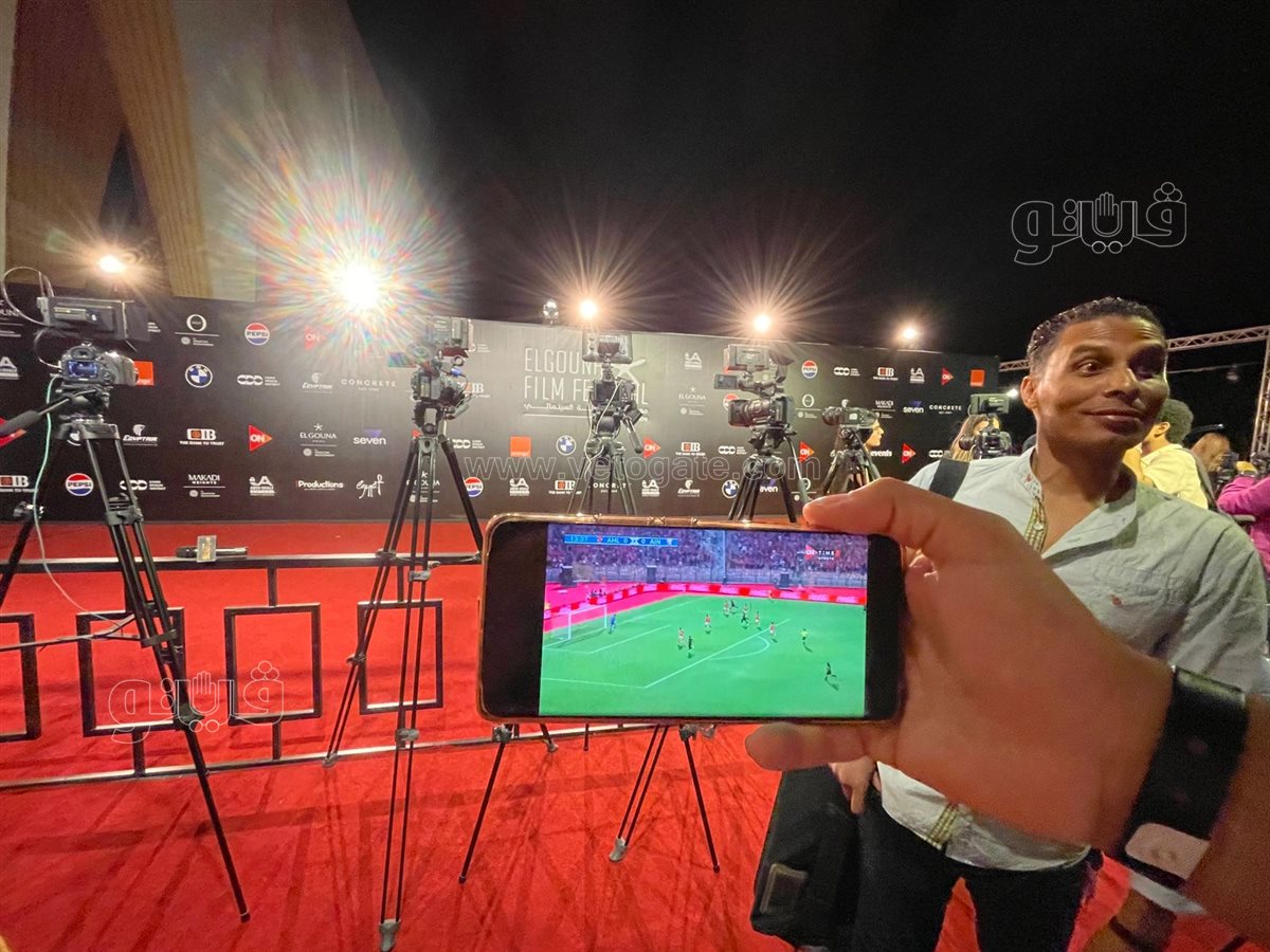 حرص عدد من الحضور في محيط ريد كاربت الفيلم الجزائري 196 متر بمهرجان الجونة السينمائي على متابعة أحداث مباراة الأهلي والعين الإماراتي في كأس إنتركونتنينتال، حيث تابع عدد من المصورين والممثلين بشغف أحداث المباراة على الهواتف المحمولة.