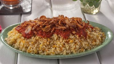 ويقدم الشيف أحمد جمعة، في السطور التالية، طريقة عمل رز السمك الأحمر الشهير، الذي يقدم في محلات الأسماك الكبرى.