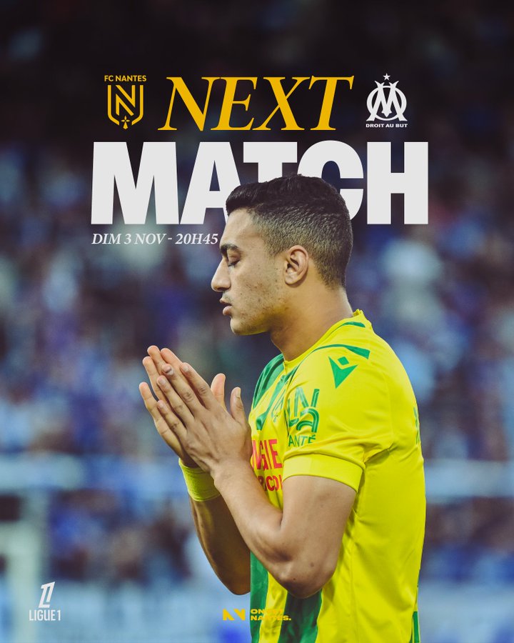 وتقام مباراة نانت ومارسيليا يوم الأحد المقبل في الجولة 11 من الدوري الفرنسي.
