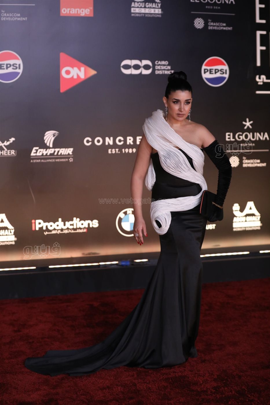 توافد عدد من نجمات الفن على السجادة الحمراء لفيلم (الفستان الأبيض) الذي يُعرض في المسابقة الرسمية لمهرجان الجونة السينمائي بدورته السابعة.