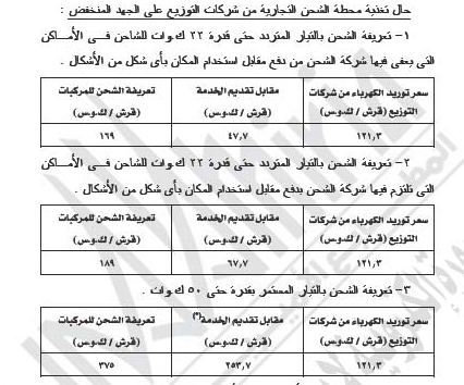 100 قرش لكل كيلوواط ساعة لمحطات الشحن بالجهد المتوسط.