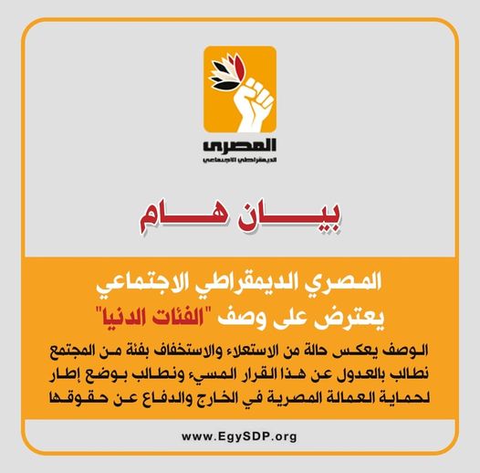 موقف المصري الديمقراطي من اعتبار السيدات من “الفئات الدنيا"