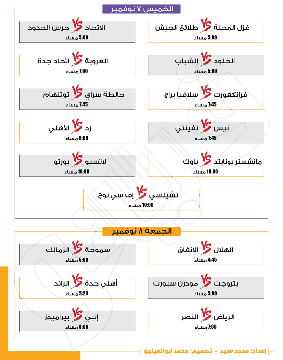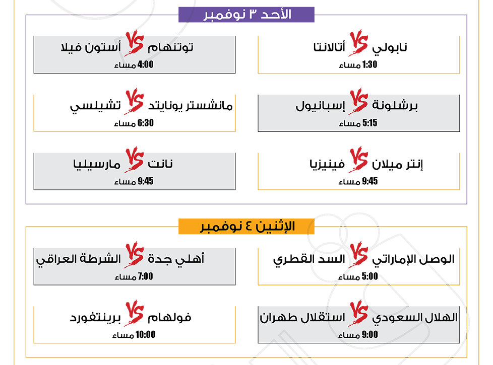 مباريات الأسبوع.. ليفربول ضد ليفركوزن.. الأهلي مع زد.. الزمالك أمام سموحة (إنفوجراف) الجمعة 01/نوفمبر/2024 - 06:13 م 11/1/2024 6:13:14 PM الأهلي وزد، فيتو محمد سيد شارك طباعة 18 حجم الخط شارك طباعة الأهلي سموحة الزمالك ليفربول