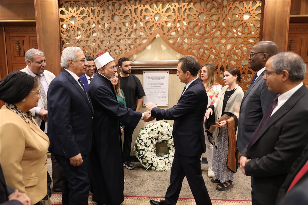 وأوضح أن العلاقات المصرية الفرنسية علاقات متينة وقوية، مشيرًا إلى أن فضيلة الإمام الأكبر شيخ الأزهر الشريف حصل على الدكتوراه من فرنسا، وقد سبقه عدد من مشايخ الأزهر الشريف كالدكتور عبد الحليم محمود، والدكتور بيصار، والدكتور محمد عبد الله دراز وغيرهم الكثير والكثير إلى يومنا هذا، وهذا يعكس مدى تعاون وانفتاح جامعة الأزهر على جميع الثقافات، إضافة إلى ذلك يدرس بجامعة الأزهر طلاب من فرنسا في جميع المجالات العلمية.