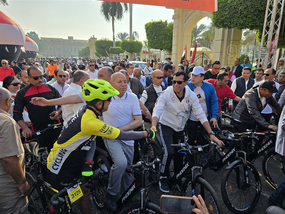 وشارك فى الماراثون نواب المحافظ للمناطق الاربعة، وسفراء الكويت، وتركيا، وإندونيسيا، وماليزيا، ولفيف من أعضاء السلك الدبلوماسى وأكثر من ٧٠٠ دراجة من مراكز الشباب، ومشروع كايرو بايك، وعدد من قيادات المحافظة.