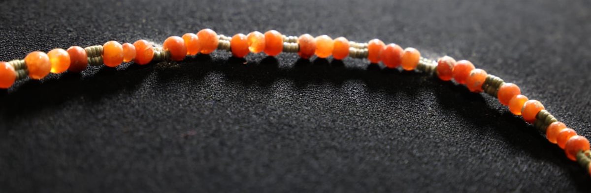 وأوضح الدكتور هشام الليثي، رئيس قطاع حفظ وتسجيل الآثار المصرية بالمجلس الأعلى للآثار، أنه من أبرز المكتشفات الأثرية قلادة فريدة مكونة من 30 خرزة أسطوانية الشكل من حجر الأماتيست مع خرزتين أسطوانيتين من العقيق يحيطان بتميمة على شكل رأس فرس النهر، بالإضافة إلى مجموعة من القلادات والأساور والسلاسل والخواتم والأحزمة المصنوعة من العقيق الأحمر والخزف المطعم باللون الأزرق والأخضر وحجر الفاينس المطلي كما زينت بتمائم على شكل رؤوس أفراس النهر والصقور وتمائم على هيئة رأس ثعبان وغيرها وجميعها في حالة جيدة من الحفظ.