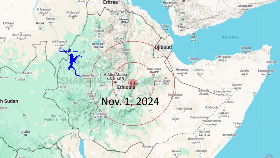 وقال “شراقي”:" ضرب زلزالان جديدان إثيوبيا في اليوم الأول من نوفمبر 2024 بقوة 4.6 درجة، على عمق 12.2 كم الساعة 8:55 م، وآخر بنفس القوة على عمق 10 كم الساعة 11:13 م بتوقيت القاهرة، وهما رقما العاشر والحادى عشر فى 5 أسابيع، حيث الزلزال الأول بتاريخ 27 سبتمبر الماضى بقوة 4.5 درجة، ثم مجموعة زلازل بين 4.5 ألى 5 درجة، وعلى عمق 10 كم، وجميعها فى منطقة الأخدود الإثيوبى التى تبعد حوالى 570 كم عن سد النهضة".
