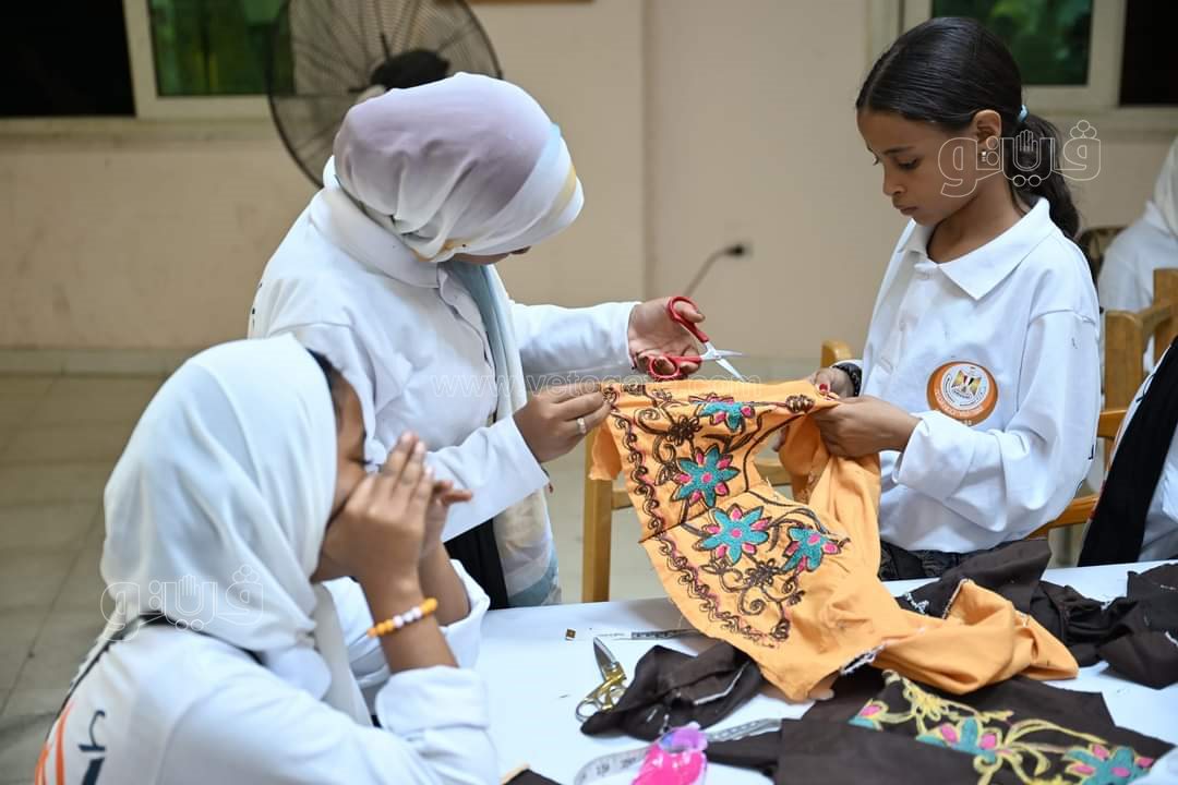 وتواصلت فعاليات الورش الحرفية مع ورشة "فن الخيامية" أوضح خلالها المدرب عماد عاشور تاريخ هذا الفن ونشأته، مع التعريف بأنواع الغرز، استعدادا للبدء في تنفيذ التصميمات على القماش.
