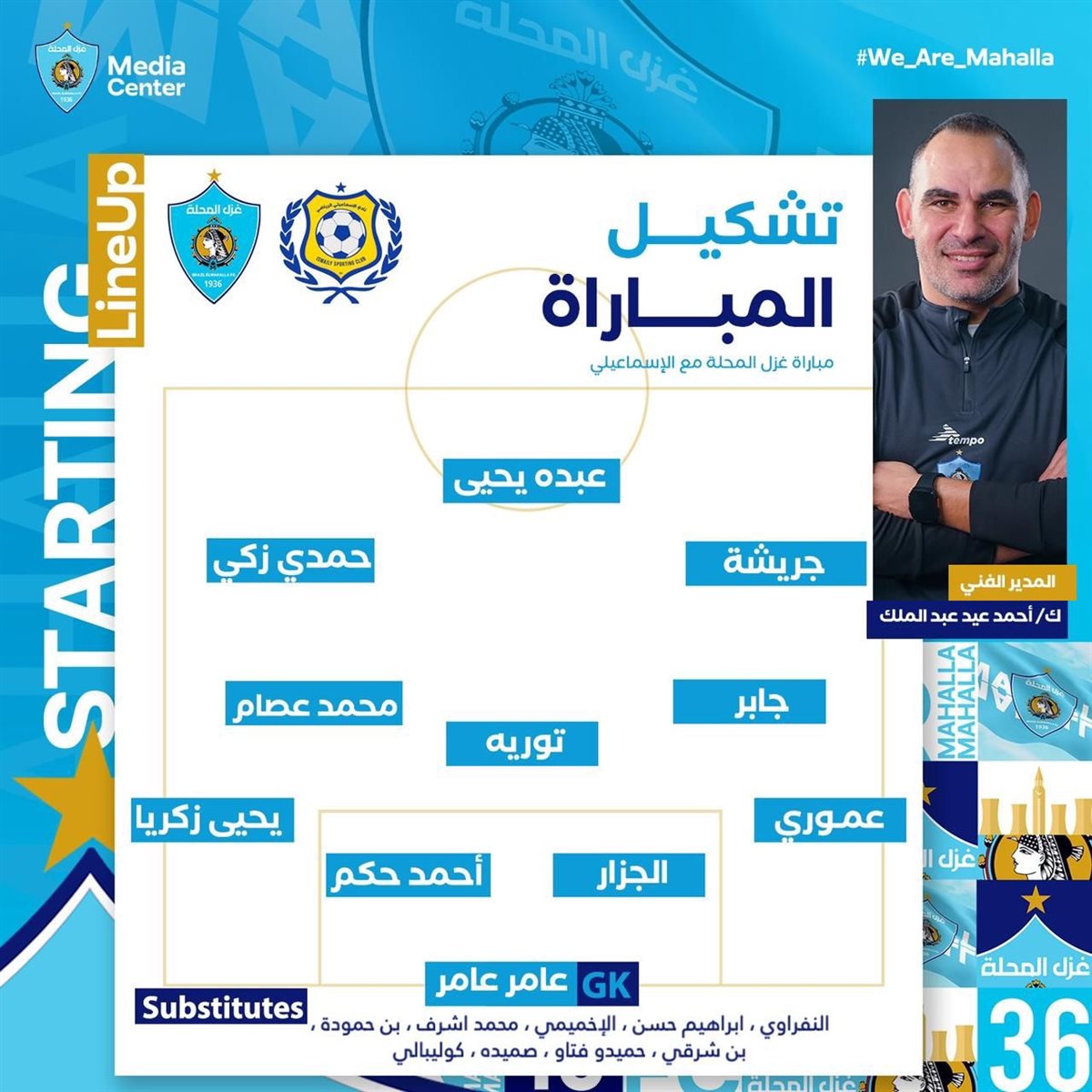 وجاء تشكيل غزل المحلة أمام الإسماعيلي كالتالي: