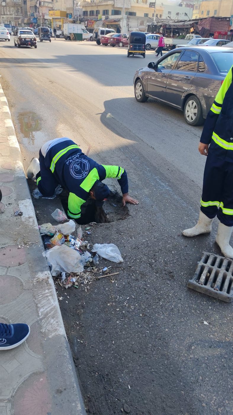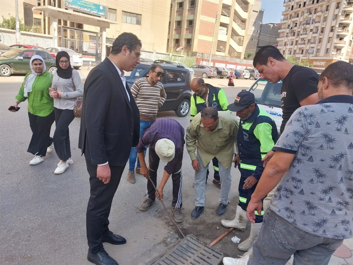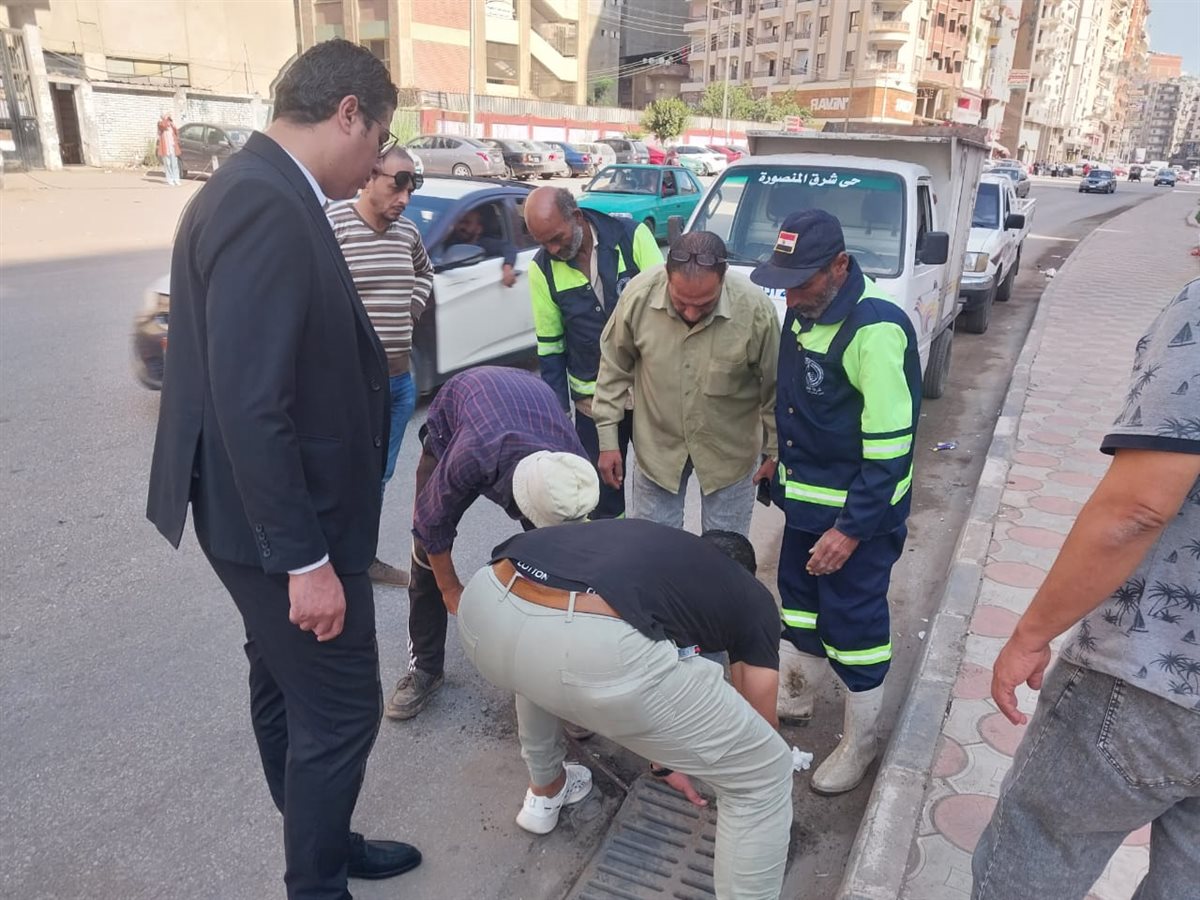 نائب محافظ الدقهلية يتابع أعمال تطهير قنوات صرف المياه والبالوعات بالمنصورة (صور)