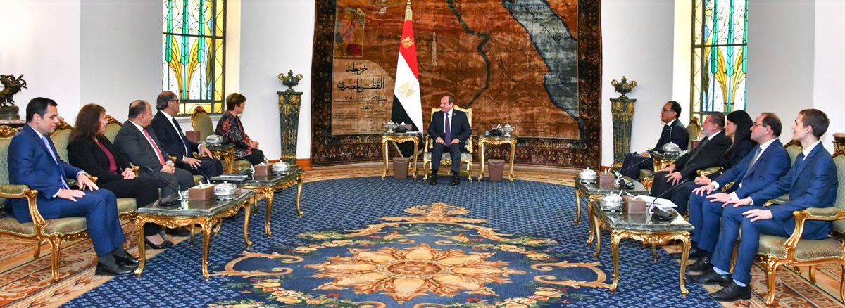 استقبل الرئيس عبد الفتاح السيسي، اليوم الأحد، "كريستالينا چورچييفا" مدير عام صندوق النقد الدولي والوفد رفيع المستوى المرافق لها، وذلك بحضور الدكتور مصطفى مدبولي رئيس مجلس الوزراء، وحسن عبد الله محافظ البنك المركزي، والدكتورة رانيا المشاط وزيرة التخطيط والتنمية الاقتصادية والتعاون الدولي، وأحمد كوجك وزير المالية.
