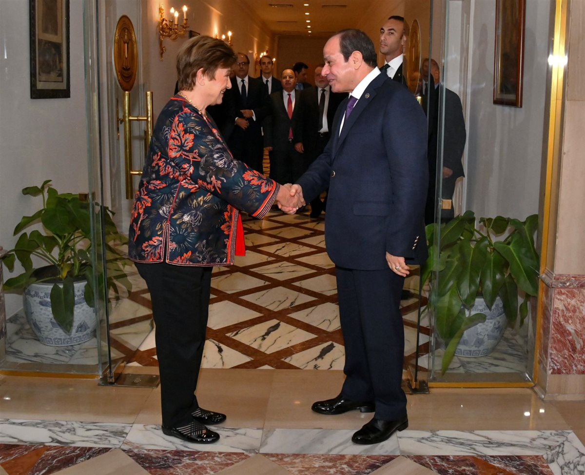 وصرح المتحدث الرسمي باسم رئاسة الجمهورية أن اللقاء تناول مناقشة التطورات الخاصة بتنفيذ برنامج الإصلاح الاقتصادي المصري، الذي يتم بالشراكة مع الصندوق، حيث أعرب الرئيس عن تطلع مصر لاستكمال التعاون مع الصندوق خلال الفترة المقبلة، والبناء على ما تحقق بهدف تعزيز استقرار الأوضاع الاقتصادية، وخفض معدلات التضخم، مشيرًا إلى ضرورة مراعاة المتغيرات وحجم التحديات التي تعرضت لها مصر في الفترة الأخيرة بسبب الأزمات الإقليمية والدولية، التي كان لها بالغ الأثر على الموارد الدولارية وإيرادات الموازنة، ومشددًا على أن أولوية الدولة هي تخفيف الضغوط والأعباء عن كاهل المواطنين، لاسيما من خلال مكافحة التضخم وارتفاع الأسعار، مع استمرار جهود جذب الاستثمارات وتمكين القطاع الخاص لزيادة معدلات التشغيل والنمو.
