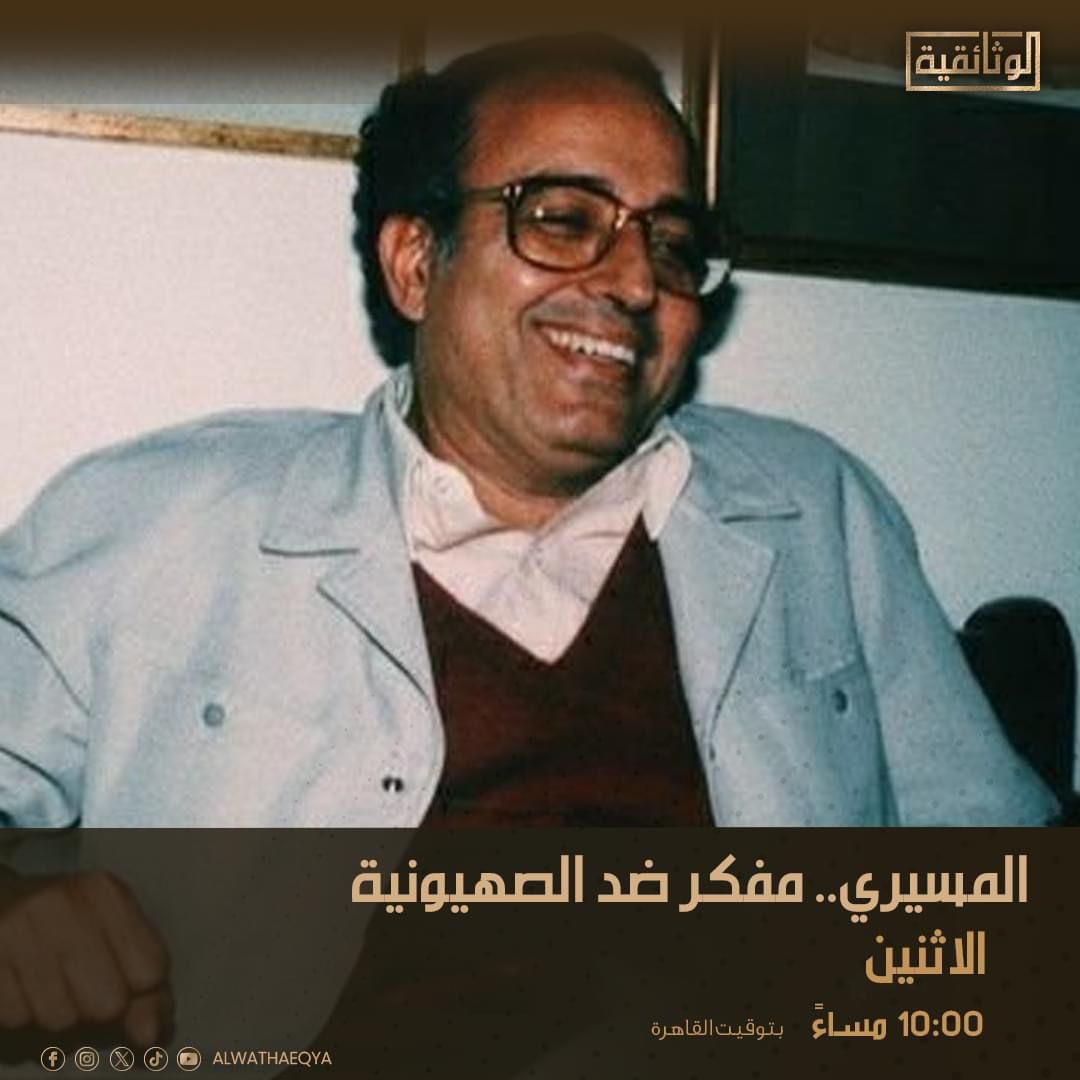 تعرض شاشة قناة "الوثائقية" اليوم في تمام العاشرة مساء الفيلم الوثائقي "المسيري.. مفكر ضد الصهيونية"، والعمل من انتاج الإنتاج الوثائقي بشركة المتحدة للخدمات الإعلامية، ويوثق الفيلم رحلة المفكر المصري الدكتور عبد الوهاب المسيري، منذ ميلاده في ثلاثينيات القرن العشرين حتى وفاته عام 2008.