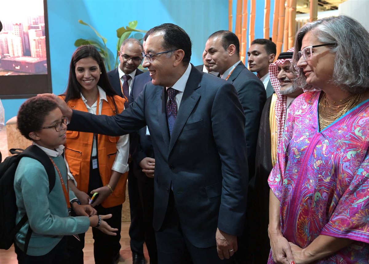 وخلال الجولة داخل المعرض، حرص رئيس الوزراء على التقاط صورة تذكارية مع أصغر مُتطوع في المنتدى، مشيدًا بمساهمته وجهوده في العمل التطوعي في هذا الحدث العالمي الضخم، كما أهدي أحد المشاركين رئيس الوزراء لوحة فنية باسم الدكتور مصطفى مدبولي مكتوبة يدويًا بالخط العربي.