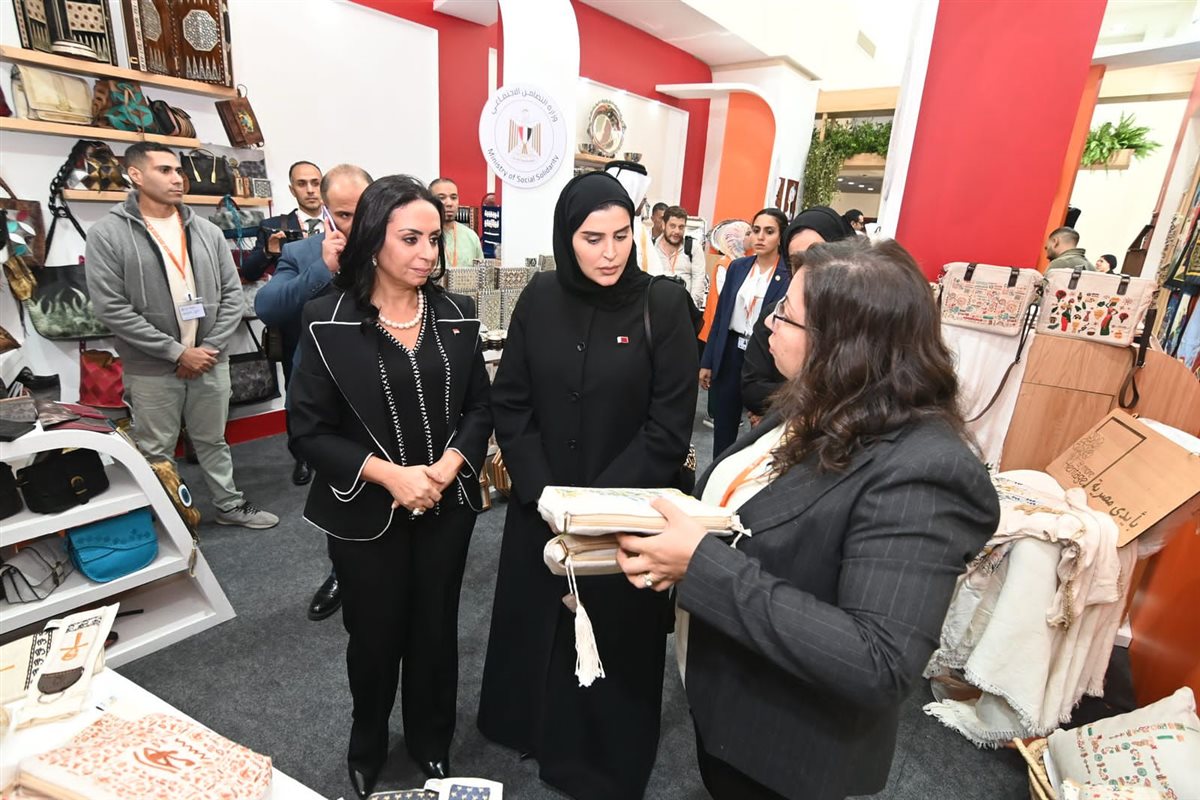 اصطحبت الدكتورة مايا مرسي وزيرة التضامن الاجتماعي، مريم بنت علي بن ناصر المسند وزيرة التنمية الاجتماعية والأسرة في دولة قطر، في جولة تفقدية لمعرض "ديارنا للحرف اليدوية والتراثية" الذي تنظمه وزارة التضامن الاجتماعي على هامش فعاليات المنتدى الحضري العالمي المقام بمركز المنارة للمؤتمرات الدولية.