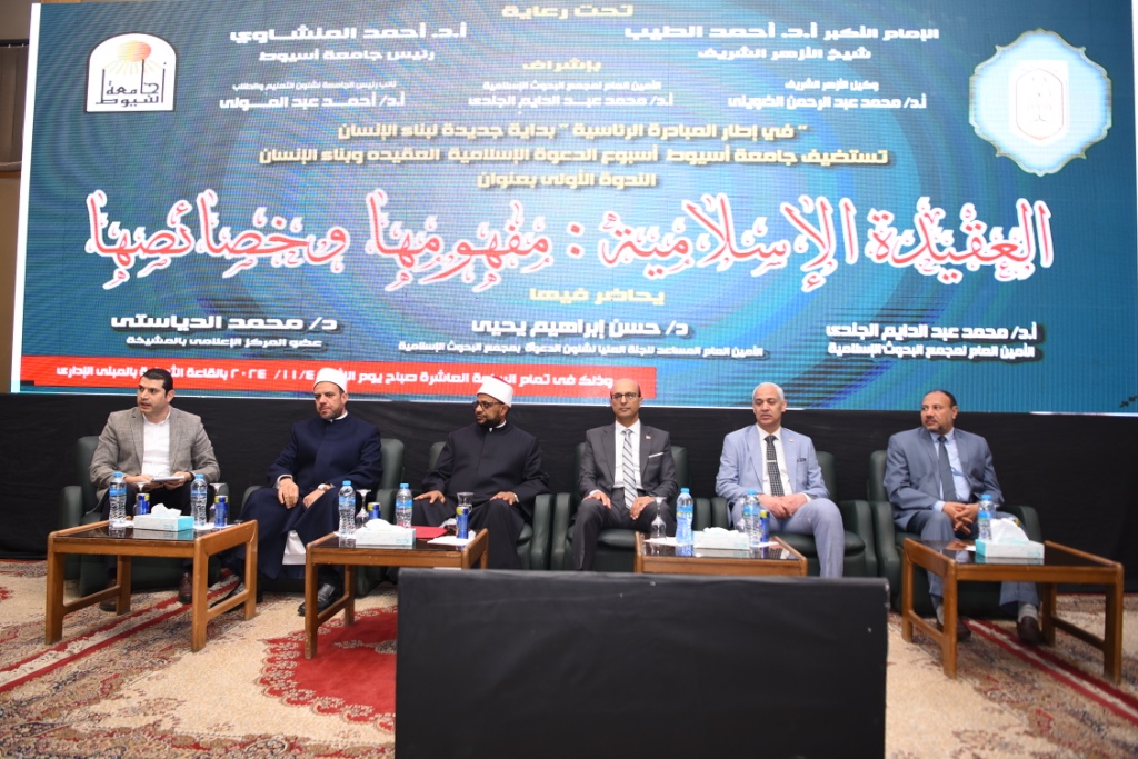 استهلّت جامعة أسيوط اليوم الإثنين ٤ من نوفمبر؛ أولى ندوات أسبوع الدعوة الإسلامية، بعنوان: «العقيدة الإسلامية: مفهومها، وخصائصها»، والتي نظمتها اللجنة العليا للدعوة، بمجمع البحوث الإسلامية بين جدران الجامعة، تحت رعاية، وحضور الدكتور أحمد المنشاوي رئيس جامعة أسيوط؛ وذلك إيمانًا منها بأهمية بناء العقيدة في نفوس الشباب، وتكوين شخصية إيمانية متوازنة، ونافعة للمجتمع؛ برعاية من فضيلة الإمام الأكبر الدكتور أحمد الطيب شيخ الأزهر الشريف، وفي إطار المبادرة الرئاسية "بداية جديدة؛ لبناء الإنسان".