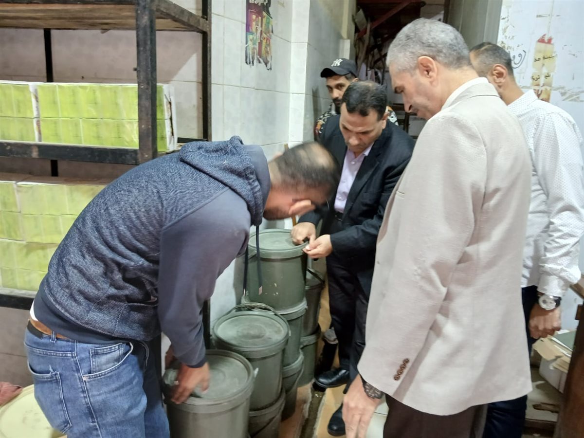كما جرى تحرير محضر حيازة عدد ١٤ بستلة مخلل متنوع زنة البستلة الواحدة ١٠ كجم باجمالى ١٤٠ كجم بدون بيانات ومجهول المصدر، وتحرير محضر حيازة عدد ٨١ علبة تمر زنة العلبة الواحدة واحد كجم باجمالى ٨١ كجم منتهية الصلاحية