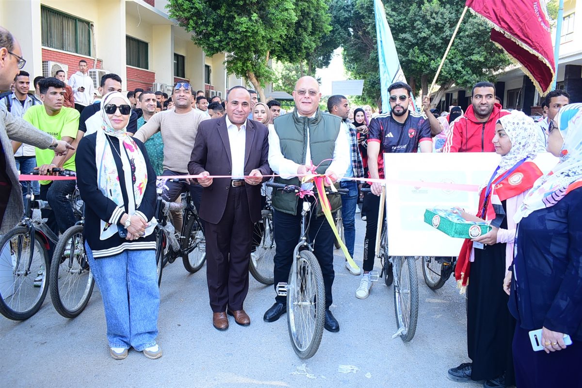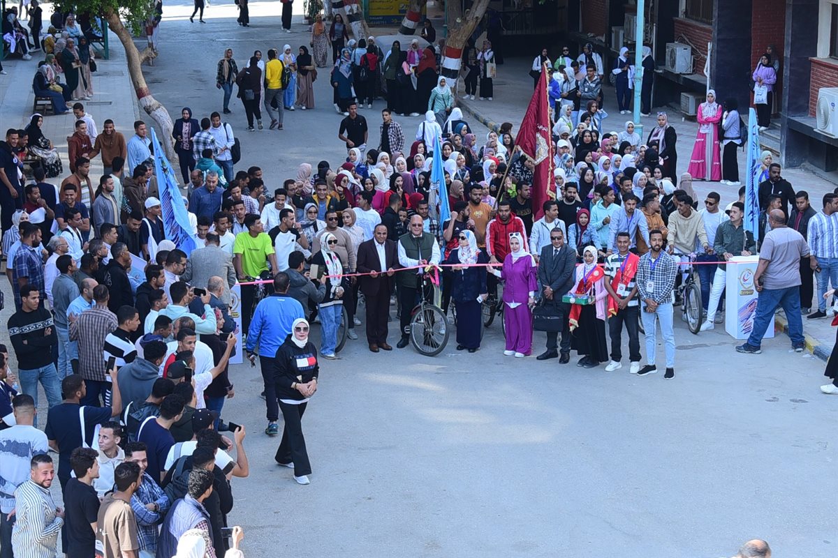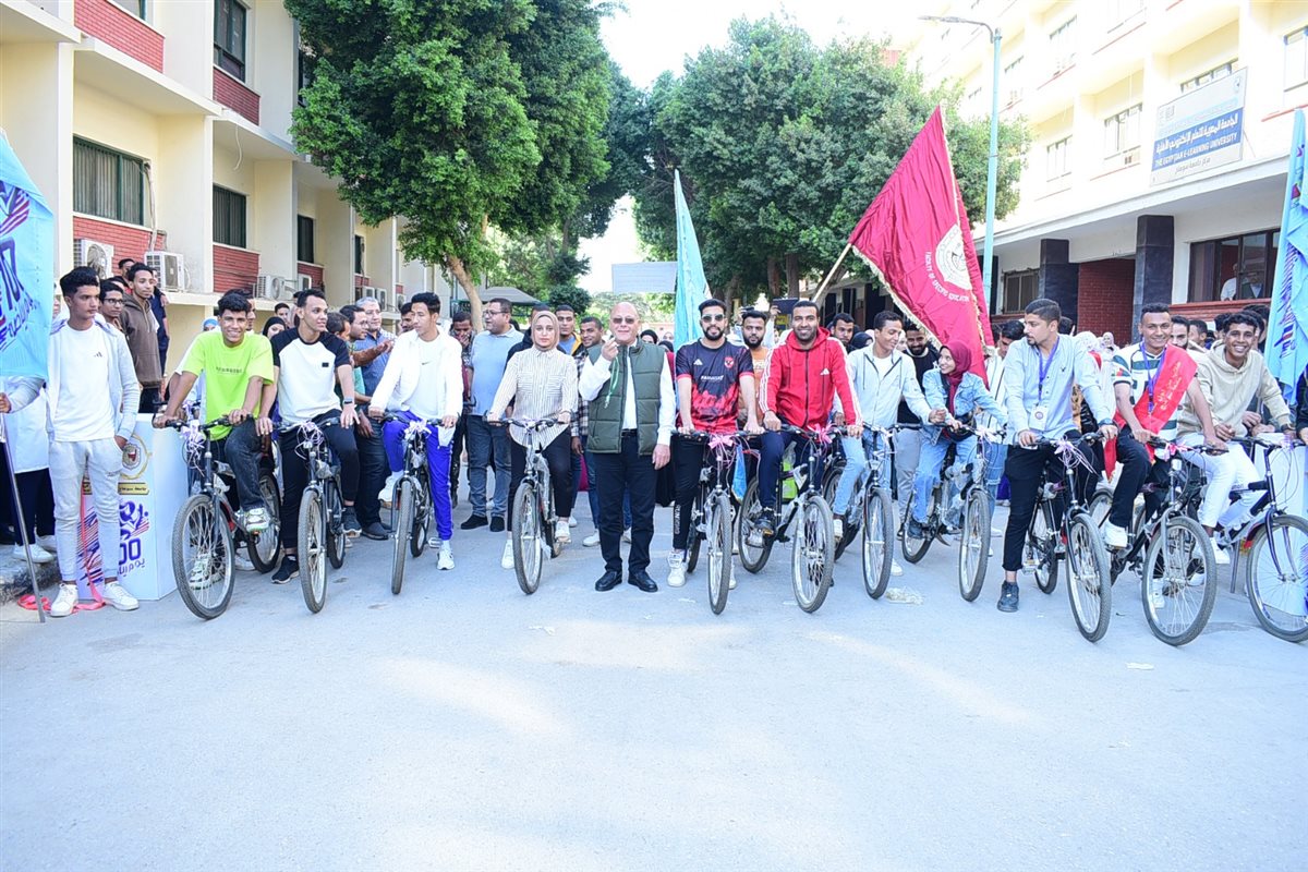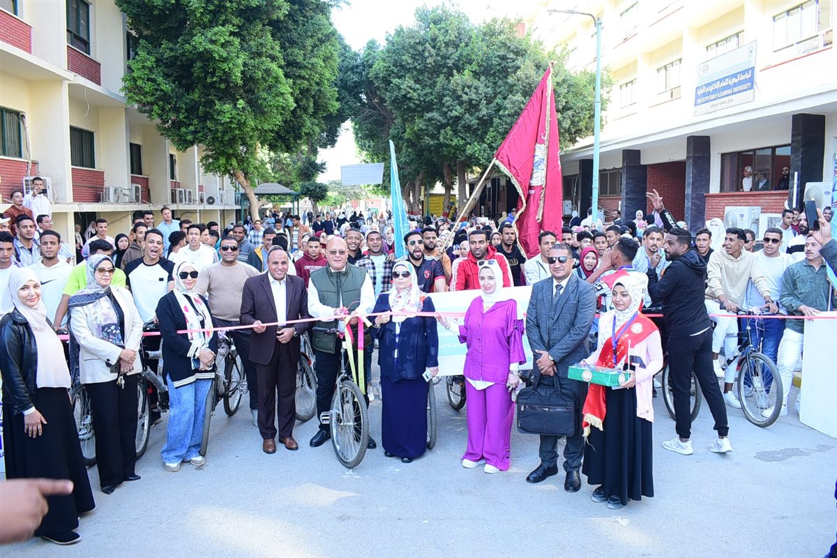 بدء ماراثون الدراجات بكلية التربية النوعية بجامعة سوهاج. ضمن فعاليات مبادرة ١٠٠ يوم رياضة