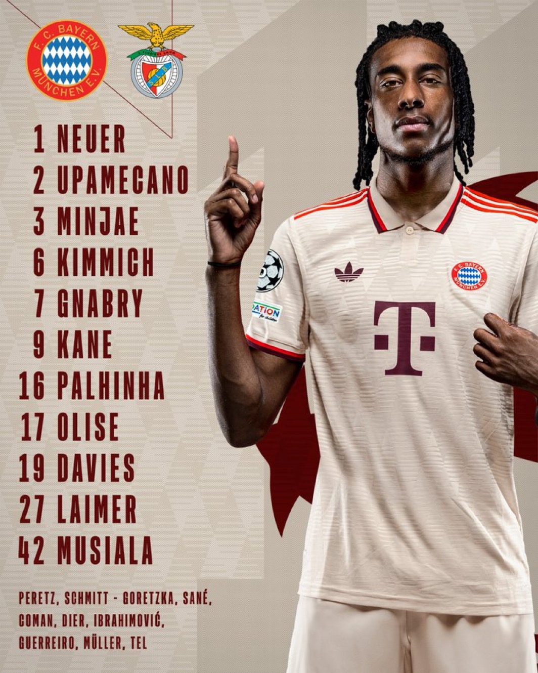 فاز بايرن ميونخ علي نظيره بنفيكا بهدف دون رد في المباراة التي جمعت بينهما، ضمن منافسات الجولة الرابعة من بطولة دوري أبطال أوروبا للموسم الحالي 2024-25.