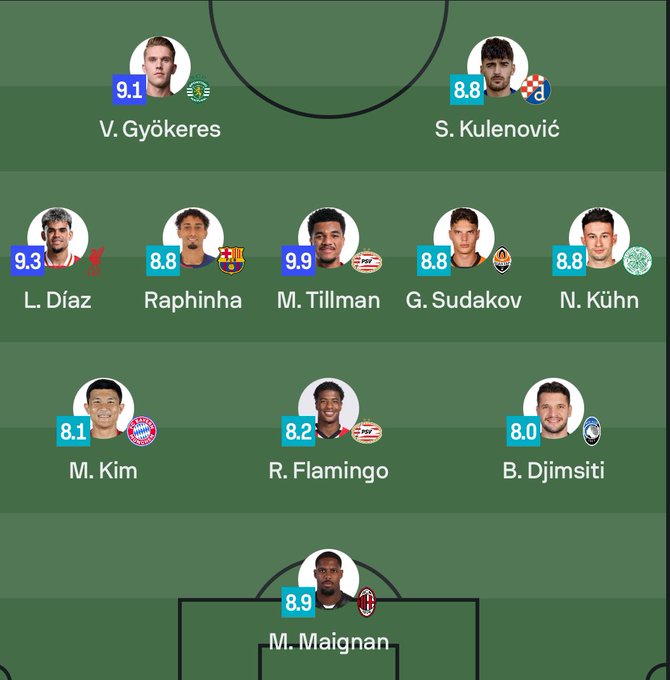 يقوده رافينيا ودياز، التشكيل المثالي للجولة الرابعة بدوري أبطال أوروبا
