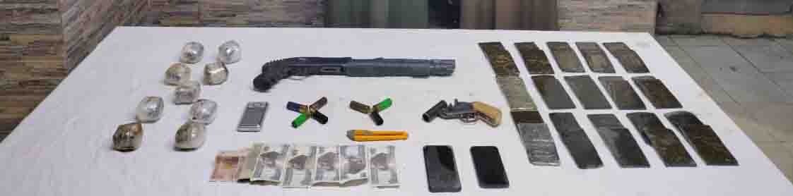 وعقب تقنين الإجراءات تم استهدافهما وضبطهما وبحوزتهما (5 كيلو جرام لمخدر الأفيون – 3 كيلو جرام لمخدر الحشيش – بندقية خرطوش – فرد خرطوش وعدد من الطلقات – سلاح أبيض - ميزان حساس).