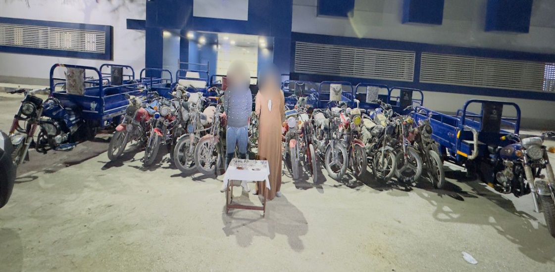وفى مديرية أمن المنيا؛ ضبط تشكيل عصابى مكون من (عاملان "لهما معلومات جنائية") بدائرة مركز شرطة سمالوط شرق، تخصص نشاطه الإجرامى فـى ارتكاب وقائع سرقات الدراجات النارية بأسلوب "توصيل الأسلاك"، وبحوزتهما (سلاح أبيض – مبلغ مالى – الأدوات المستخدمة فى وقائع السرقة).