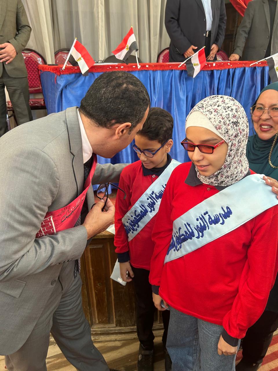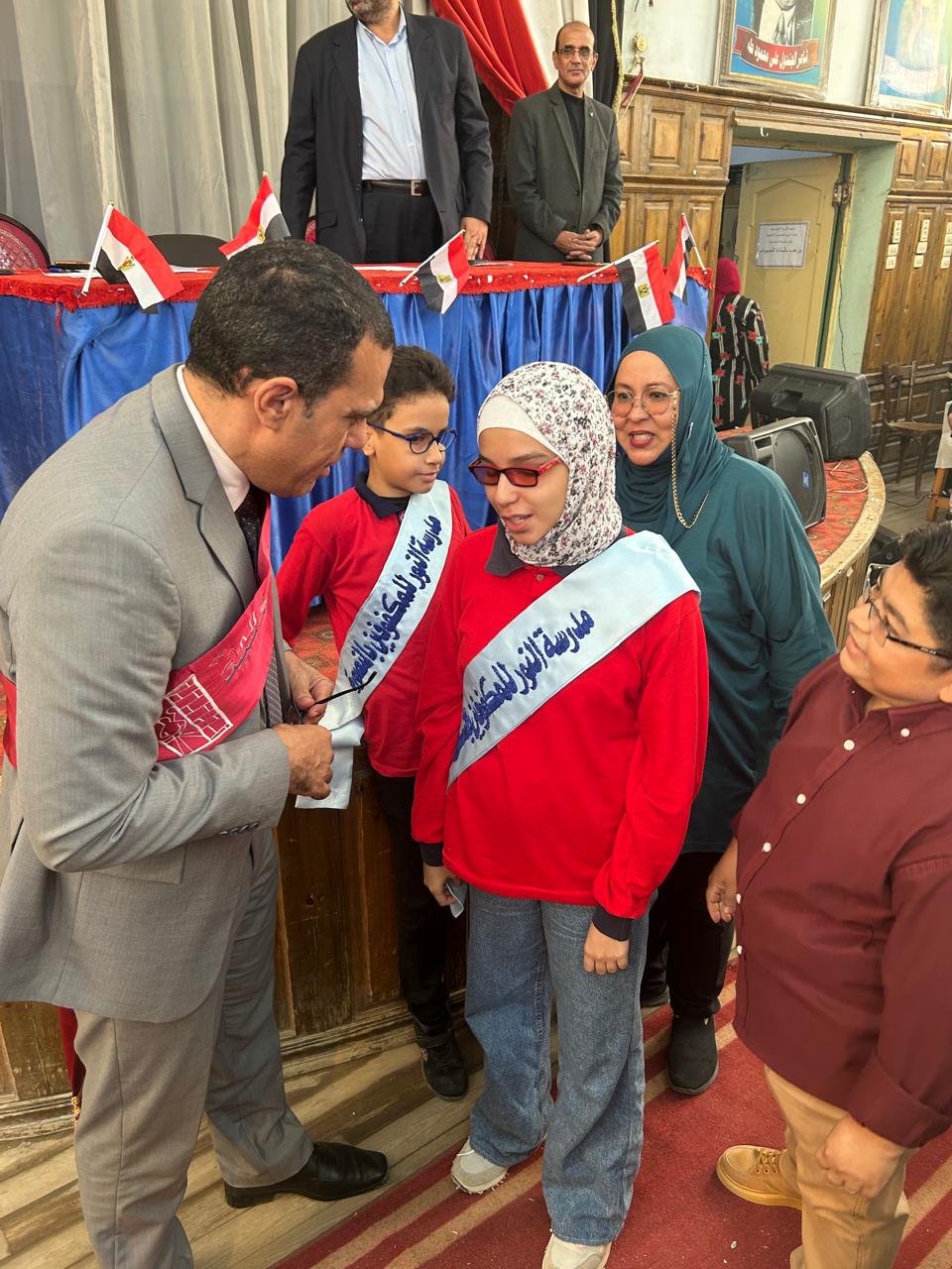 وقام "العدل" يرافقه مدير مديرية التربية والتعليم بتكريم طالبة تتعافى من مرض السرطان بمستشفى ٥٧٣٥٧ لحرصها علي الحضور للمدرسة وتلقي العلم والاشتراك في الأنشطة المختلفة رغم حالتها الصحية متمنين الشفاء العاجل لها.
