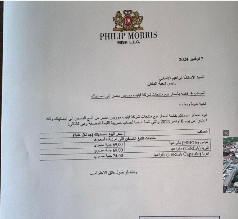 قررت شركة فيليب موريس مصر، رفع أسعار التبغ المسخن اعتبارا من غد الجمعة 8 نوفمبر.