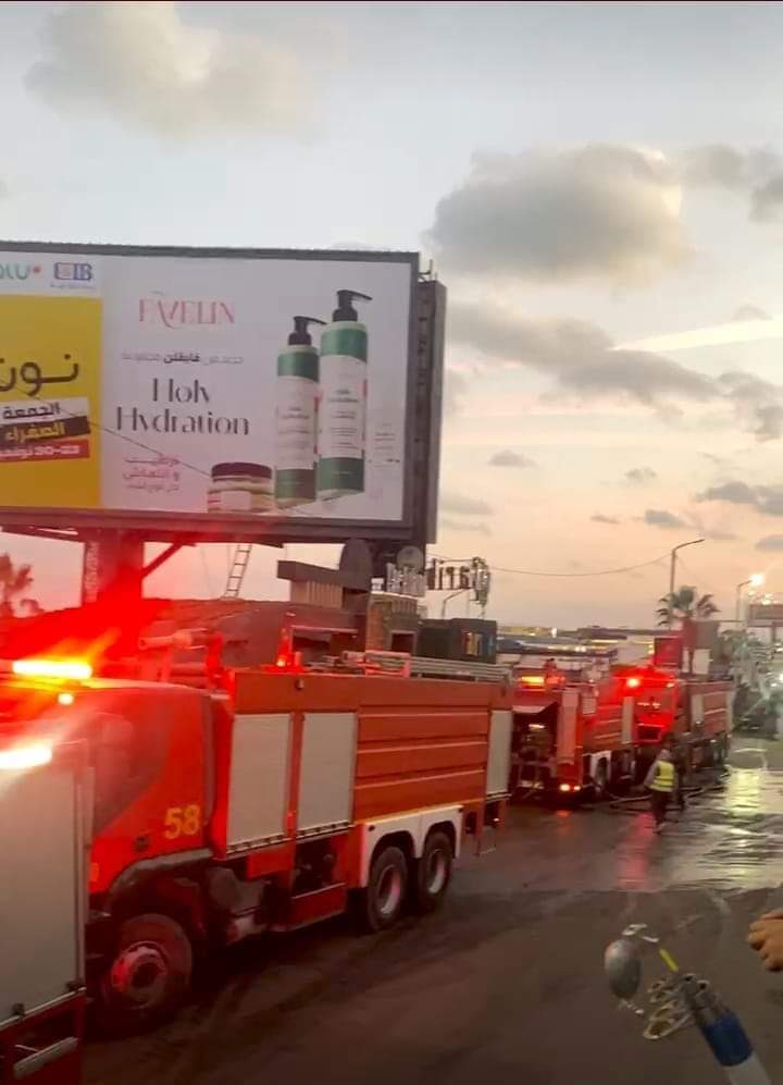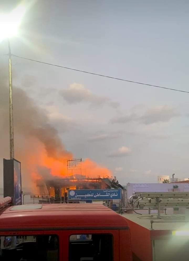 حريق هائل بأحد الكافيهات المجاورة لنادي المعلمين بكورنيش الإسكندرية (صور)