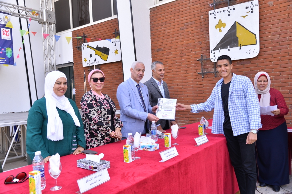 وتم توزيع الجوائز على الفائزين بالمراكز الخمس الأولى في كل مجال من مجالات التنافس الأربعة، للطلاب، والطالبات المشاركين من جميع الكليات (هواة)، بإجمالي ٢٠ جائزة؛ حيث حصل على المركز الأول في كل مجال الطلاب: جهاد أيمن بكلية التربية؛ إنشاد ديني، ومارسيل كرم بكلية التربية للطفولة المبكرة؛ ترانيم، وسلمى أشرف بكلية الحقوق؛ غناء، والأمير جورج بكلية الطب؛ عزف.
