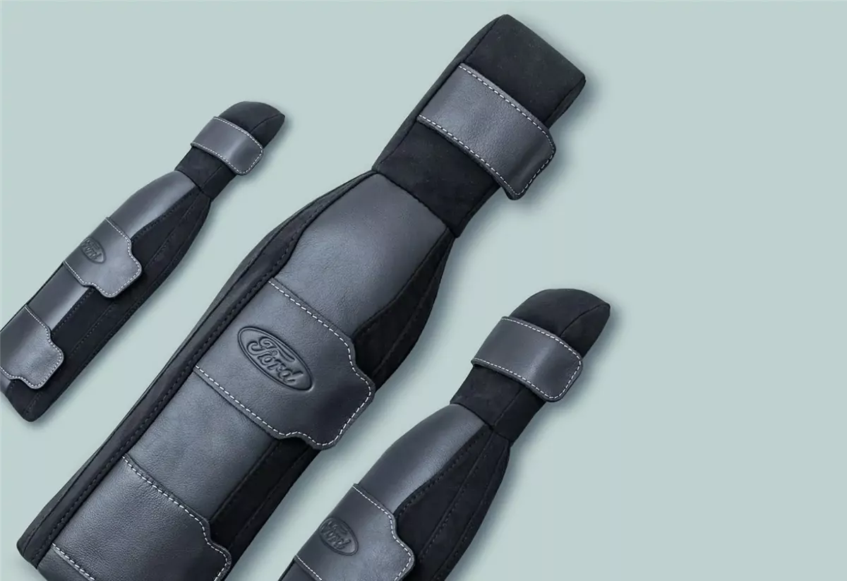 عمل الفريق مع المهندسين لضمان أن حزام الدعم يفي بمعايير الجودة الخاصة بشركة فورد. كما قاموا بتجربة مواد متنوعة، واختاروا رغوة عضوية مُرَكبة قليلة التطاير، ملفوفة في قماش مصنوع جزئيًا من البلاستيك المعاد تدويره والذي يلتف حول حزام الأمان باستخدام مثبت فيلكرو.