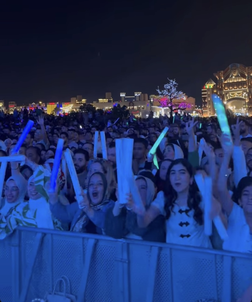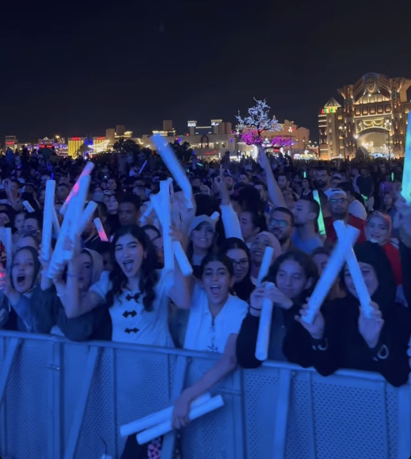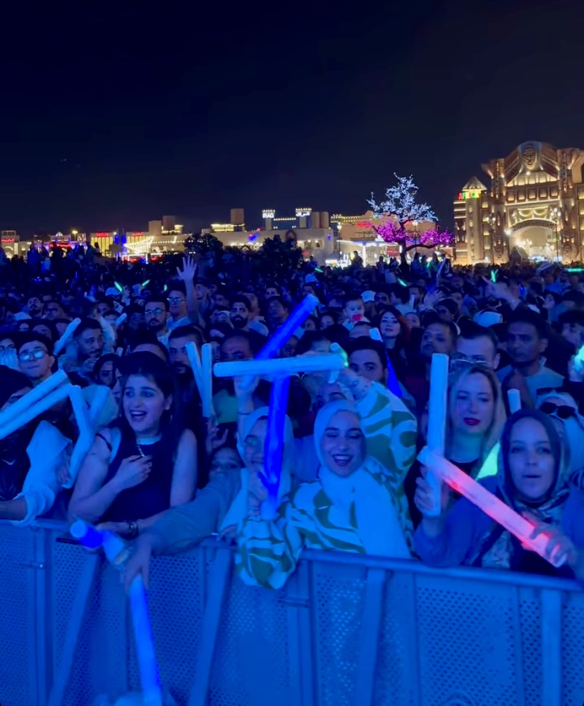 توافد عدد كبير من الجمهور علي حفل تامر حسني بالقرية العالمية في دبي، حيث رفع الحفل شعار “كامل العدد”.
