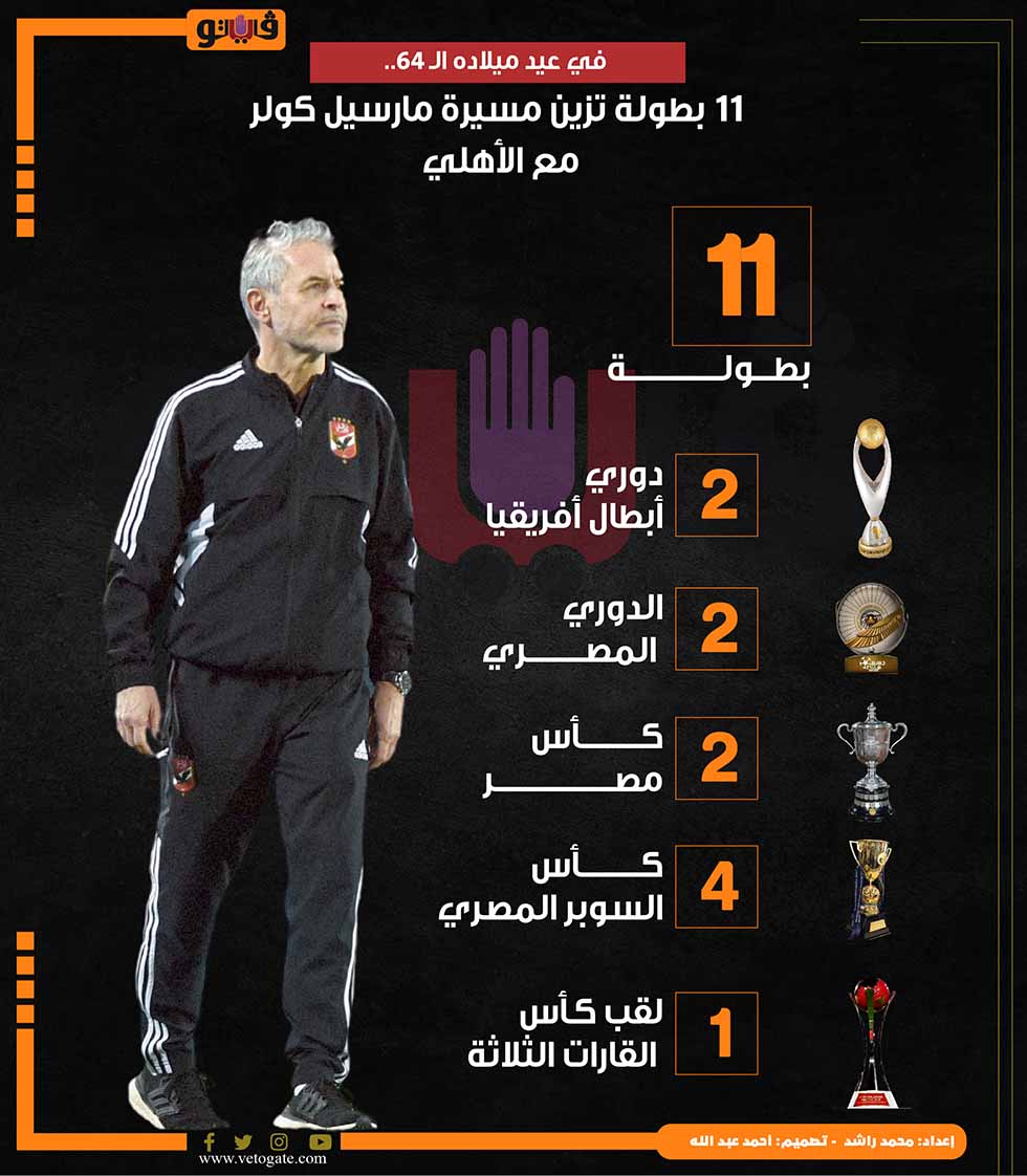 في عيد ميلاده الـ 64.. 11 بطولة تزين مسيرة مارسيل كولر مع الأهلي (إنفوجراف) الإثنين 11/نوفمبر/2024 - 02:07 م 11/11/2024 2:07:48 PM كولر شارك طباعة 18 حجم الخط شارك طباعة دوري أبطال أفريقيا الدوري المصري كأس مصر كأس السوبر المصري كأس العالم للأندية