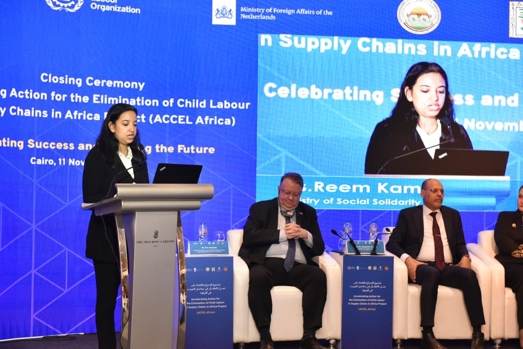 في كلمته، أكد إيريك أوشلان مدير مكتب منظمة العمل الدولية بالقاهرة على أنه"من خلال مشروع ACCEL Africa تم تنفيذ أنشطة متعددة وشاملة لمعالجة الأسباب الجذرية لعمل الأطفال. ومع نهاية المشروع، نلتزم بالاستمرار في الحفاظ على التقدم الذي حققناه وتوسيعه، حيث تتضمن استراتيجية الخروج من المشروع توصيات محددة وقابلة للتنفيذ، بما في ذلك تعزيز نظام مراقبة عمل الأطفال وتوجيه الجهود نحو الصناعات وسلاسل التوريد والمناطق الجغرافية التي تنتشر فيها ظاهرة عمل الأطفال، كما تم تحديدها في المسح الوطني لعمل الأطفال لعام 2023..