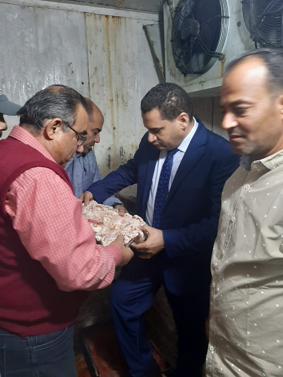 واطلع المحافظ على جهود الحملات التي اسفرت عن ضبط احد المنشآت غير المرخصة بحي الوراق تقوم بانتاج مصنعات اللحوم " البرجر، السجق، اللانشون باستخدام جلود وعظام وأجنحة الدواحن في ضربه جديدة توجهها الاجهزة التموينية للمنشأت المخالفة التي تتلاعب بصحة وسلامه المواطنين.