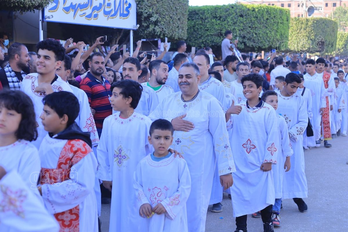 واصطف خلف الأيقونة عدد كبير من الزوار، والتي تعالت أصوات الترانيم والتسابيح والمدائح والزغاريد من النساء حين رؤيتهم ايقونة الشهيد مارجرجس الروماني.
