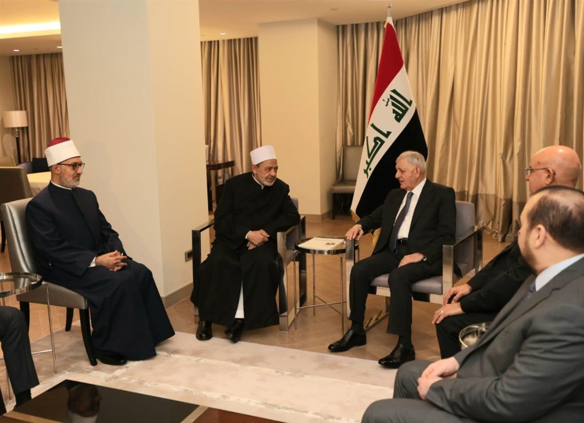 التقى فضيلة الإمام الأكبر أ. د. أحمد الطيب، شيخ الأزهر الشريف، رئيس مجلس حكماء المسلمين، الرئيس عبد اللطيف رشيد، رئيس العراق؛ لبحث سبل تعزيز العلاقة بين الطرفين.