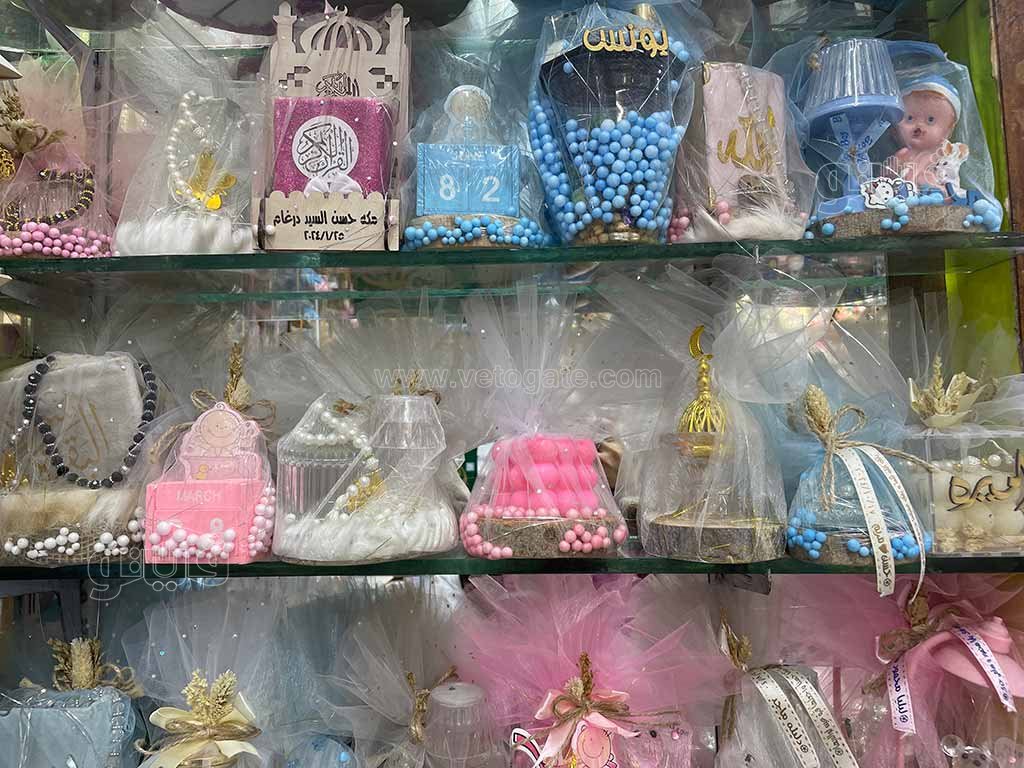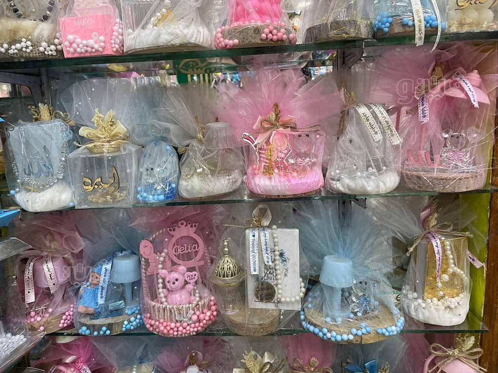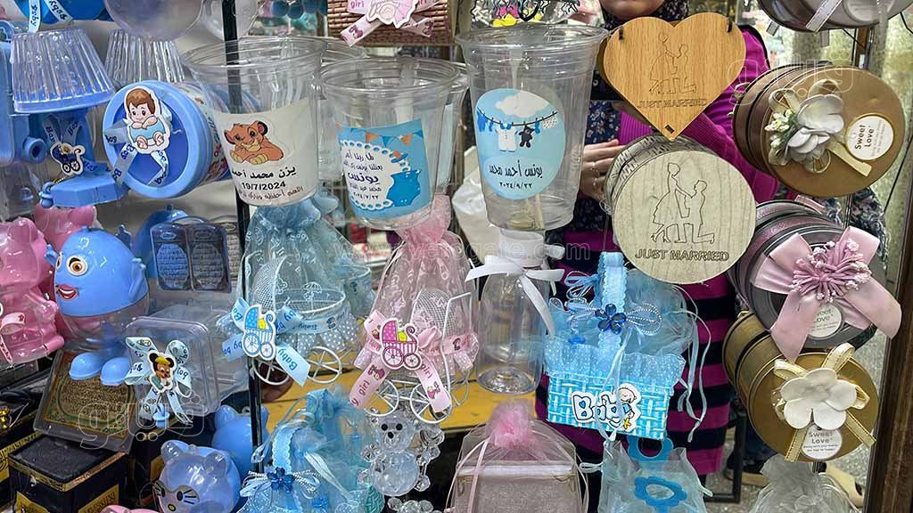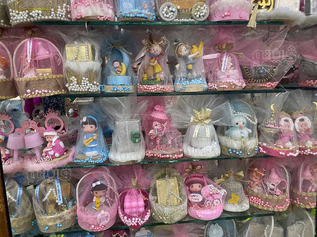 وتتنوع الأشكال المتاحة، مثل شكل السفينة الشراعية والدمية على شكل بيبي بسعر 65 جنيهًا، وعلبة على شكل مسجد مطبوع عليه اسم البيبي بسعر 150 جنيهًا، كما يوجد عنقود كريستال ومعدن بعد تغليفه في العلبة ووضع الحلوى بسعر 350 جنيهًا.