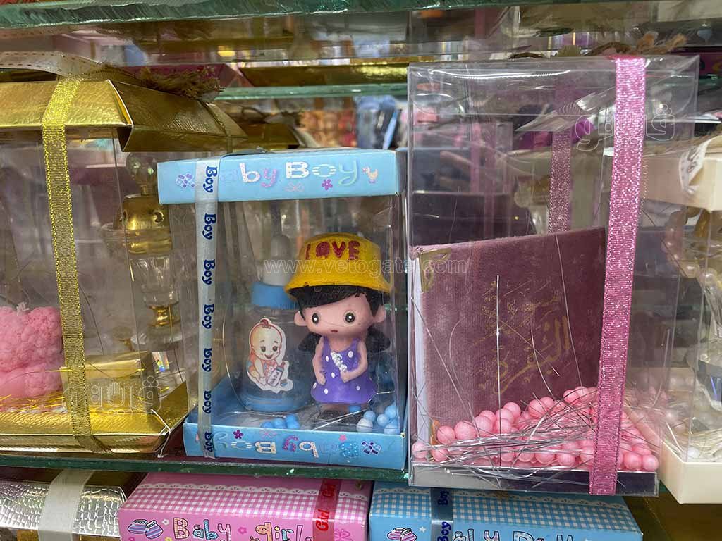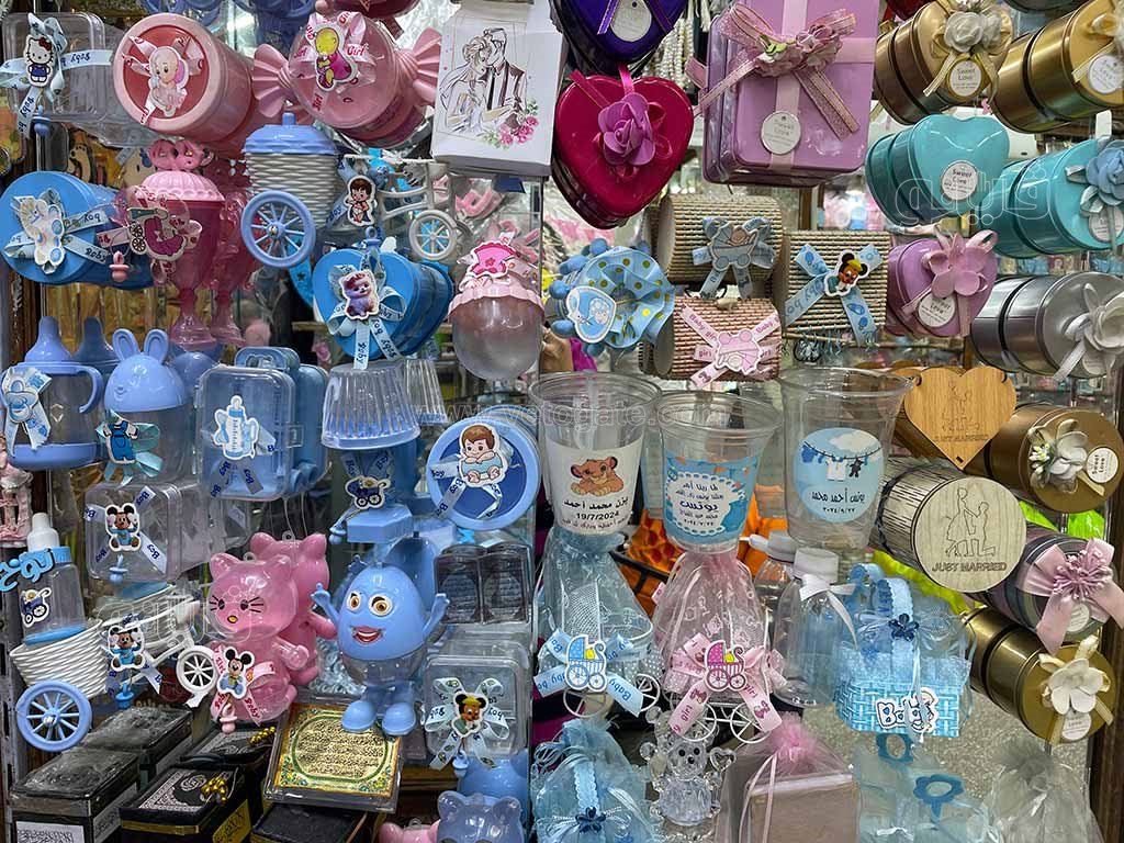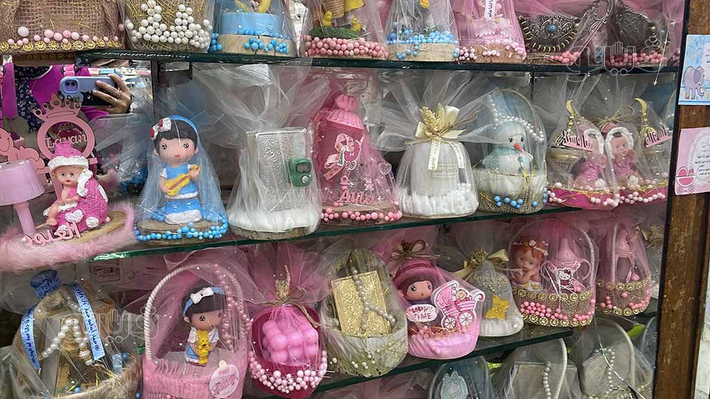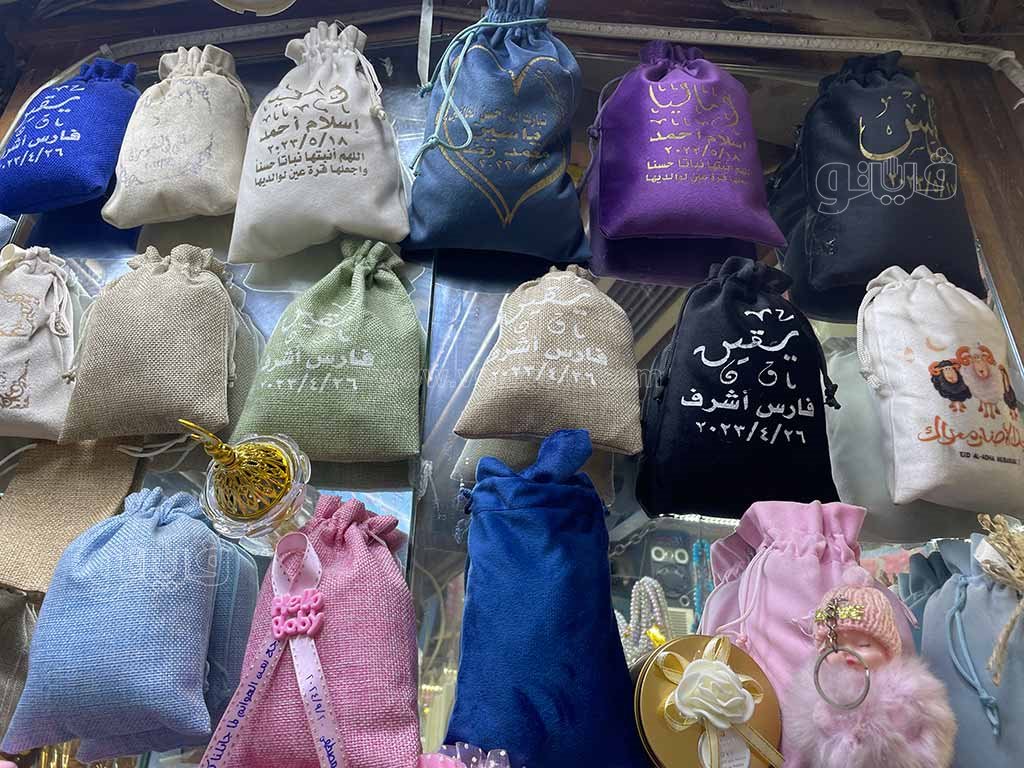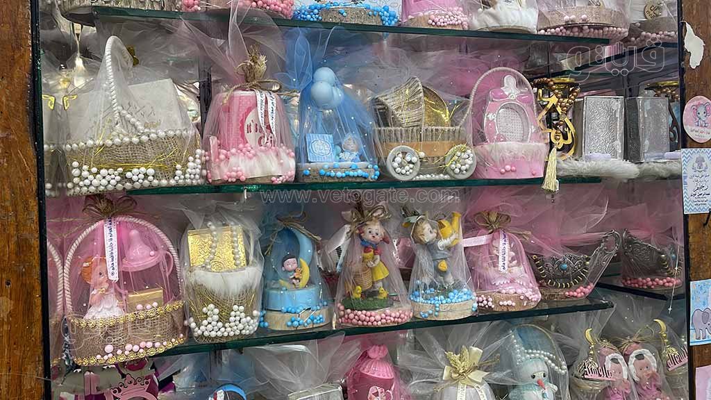وتتنوع الأشكال المتاحة، مثل شكل السفينة الشراعية والدمية على شكل بيبي بسعر 65 جنيهًا، وعلبة على شكل مسجد مطبوع عليه اسم البيبي بسعر 150 جنيهًا، كما يوجد عنقود كريستال ومعدن بعد تغليفه في العلبة ووضع الحلوى بسعر 350 جنيهًا.