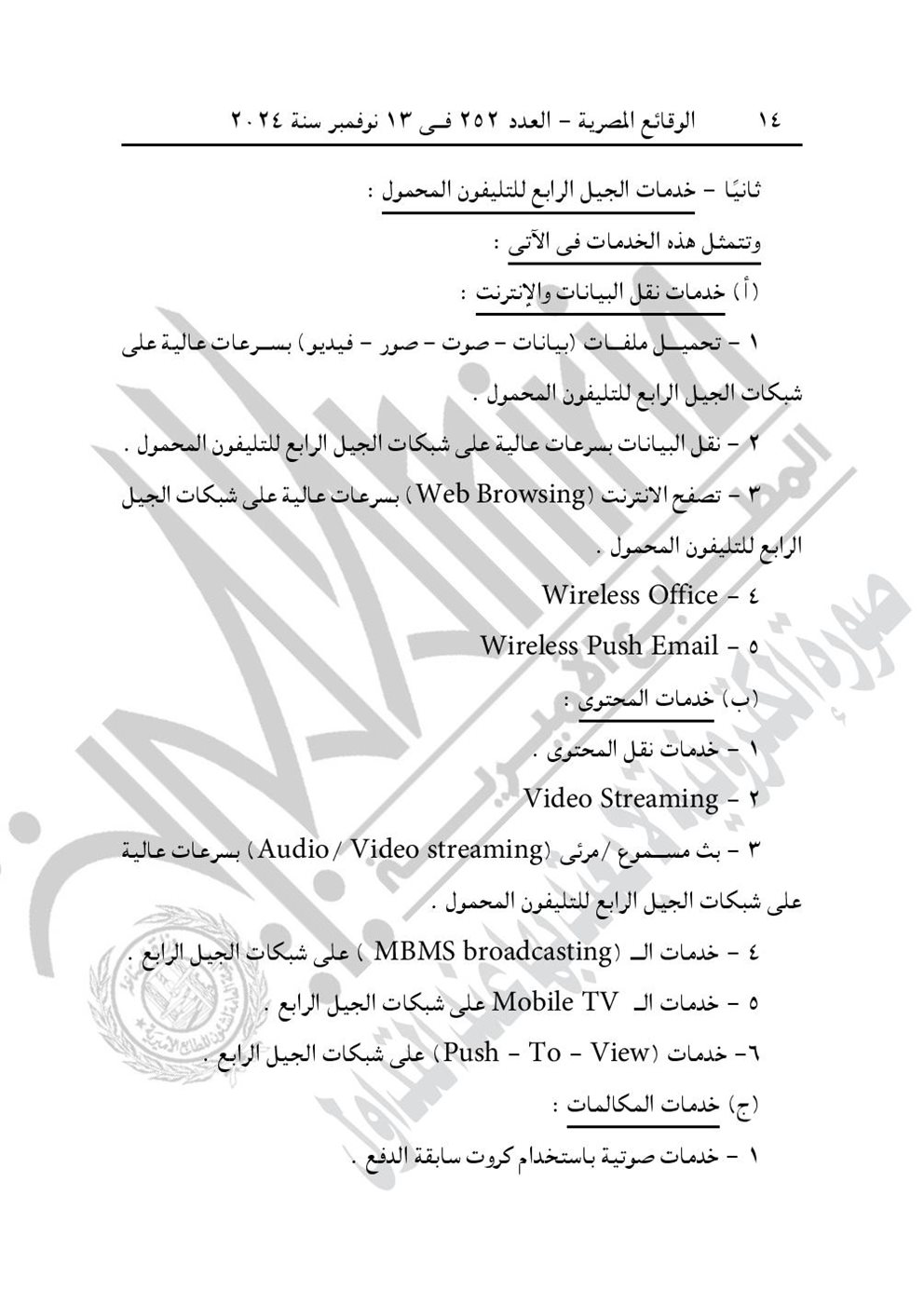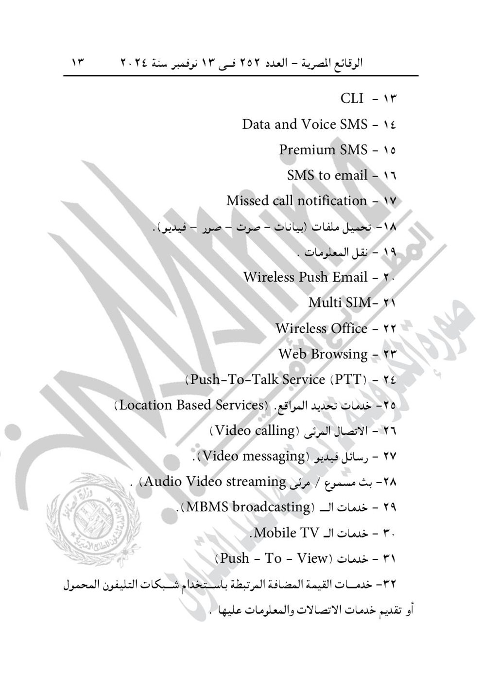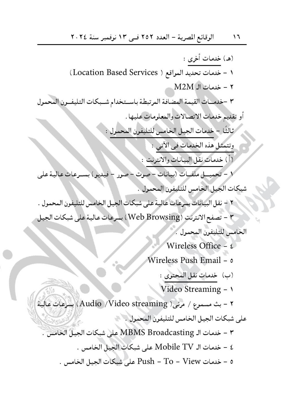 نشرت جريدة الوقائع المصرية في عددها رقم 252، الصادر في 13 نوفمبر 2024، قرار وزارة الاتصالات وتكنولوجيا المعلومات رقم 724 لسنة 2024، بشأن تحديد الخدمات والأعمال الخاضعة لرسم تنمية صناعة تكنولوجيا المعلومات والاتصالات.