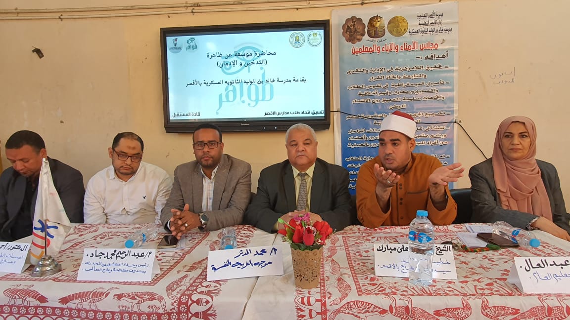 دشنت مديرية التربية والتعليم بمحافظة الأقصر، اليوم ندوة طلابية بمدرسة خالد بن الوليد الثانوية العسكرية، للتوعية بمخاطر التدخين والإدمان، في ضوء توجيهات محمد عبد اللطيف وزير التربية والتعليم والتعليم الفني، وتحت رعاية المهندس عبدالمطلب عمارة محافظ الأقصر، وبقيادة الدكتور صفوت جارح وكيل وزارة التربية والتعليم بالأقصر، في ضوء مبادرة ظواهر للحد والقضاء على السلوكيات السلبية في المجتمع.